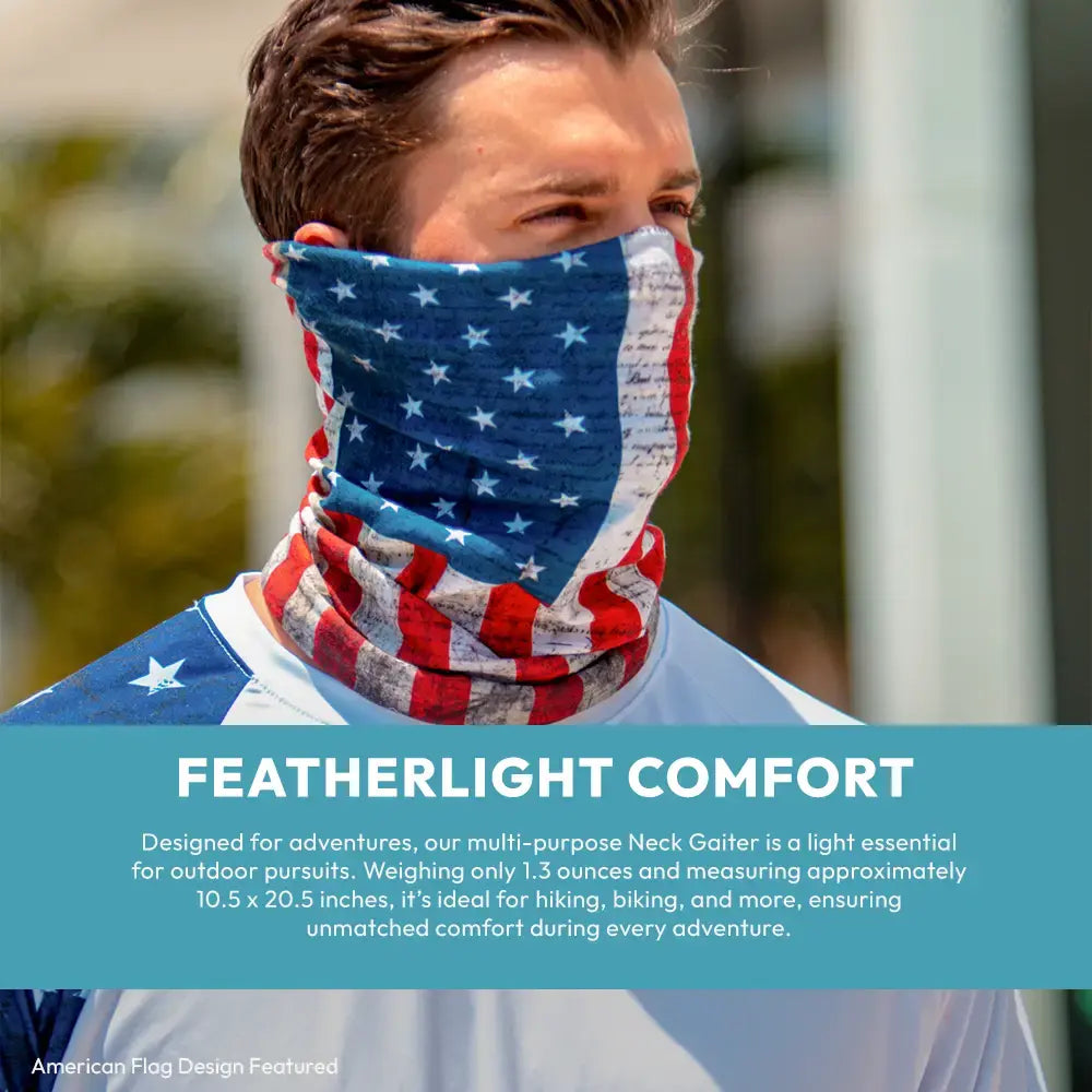 Our Multi-Use Face Shields®, commonly referred to as Neck Gaiters, are made for wherever the outdoors takes you. Lightweight, breathable, and comfortable, they keep you cool, dry, and protected in any conditions. Wear them over 10 different ways—like a face cover, bandana, beanie, or hair tie—whether you're hiking, fishing, riding, or out in the sun. With UPF 30+ sun protection, they help block harmful UV rays on bright days to keep you safe.
