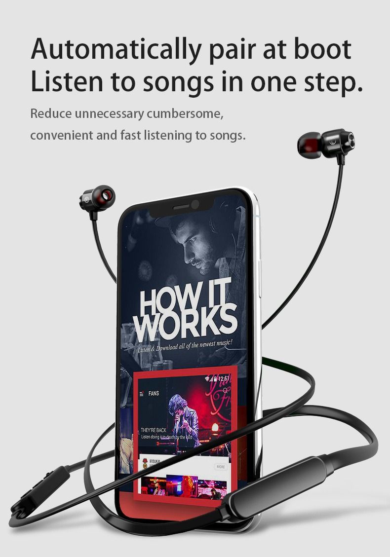 - These headphones feature a flexible band that rests around the neck. This design offers a secure and comfortable fit, especially during physical activities.