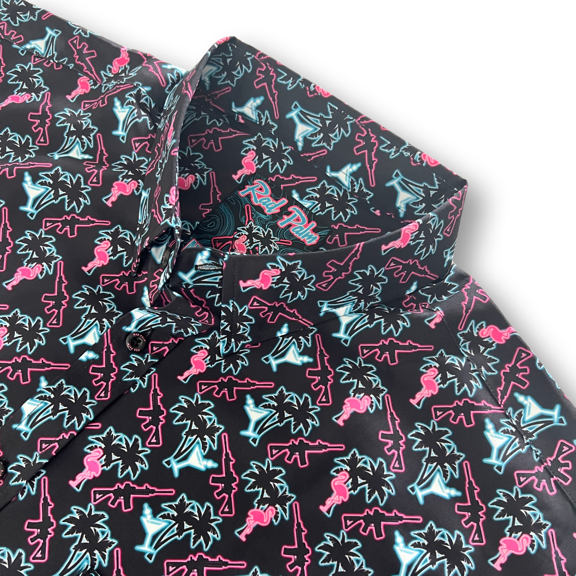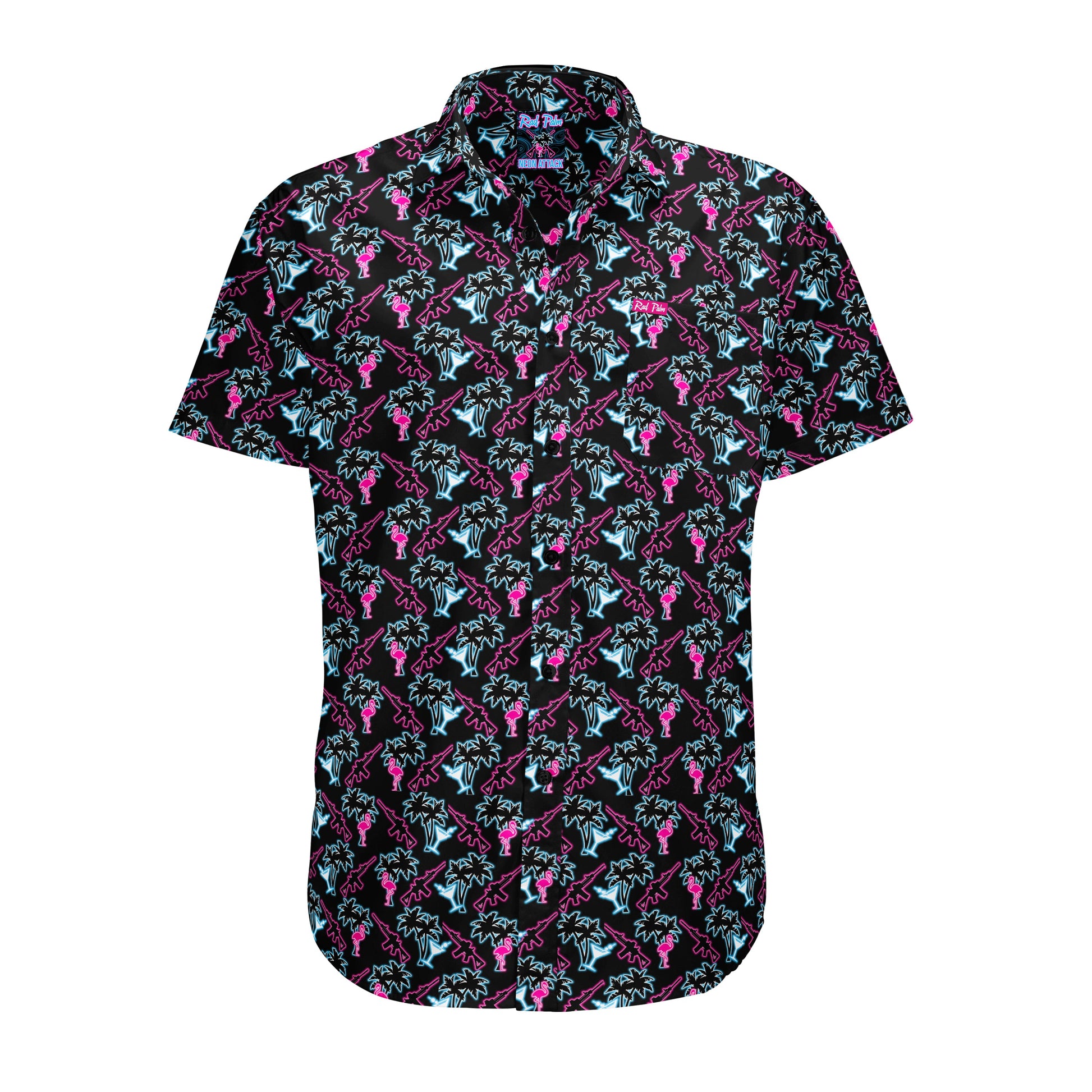 The Neon Attack short sleeve button-down shirt combines comfort and style with its 93% polyester and 7% spandex blend. Featuring four-way stretch fabric, it offers excellent mobility and a tailored fit. The custom Rad Palm design adds a unique, vibrant touch, making it perfect for those who want to stand out while enjoying superior wearability.