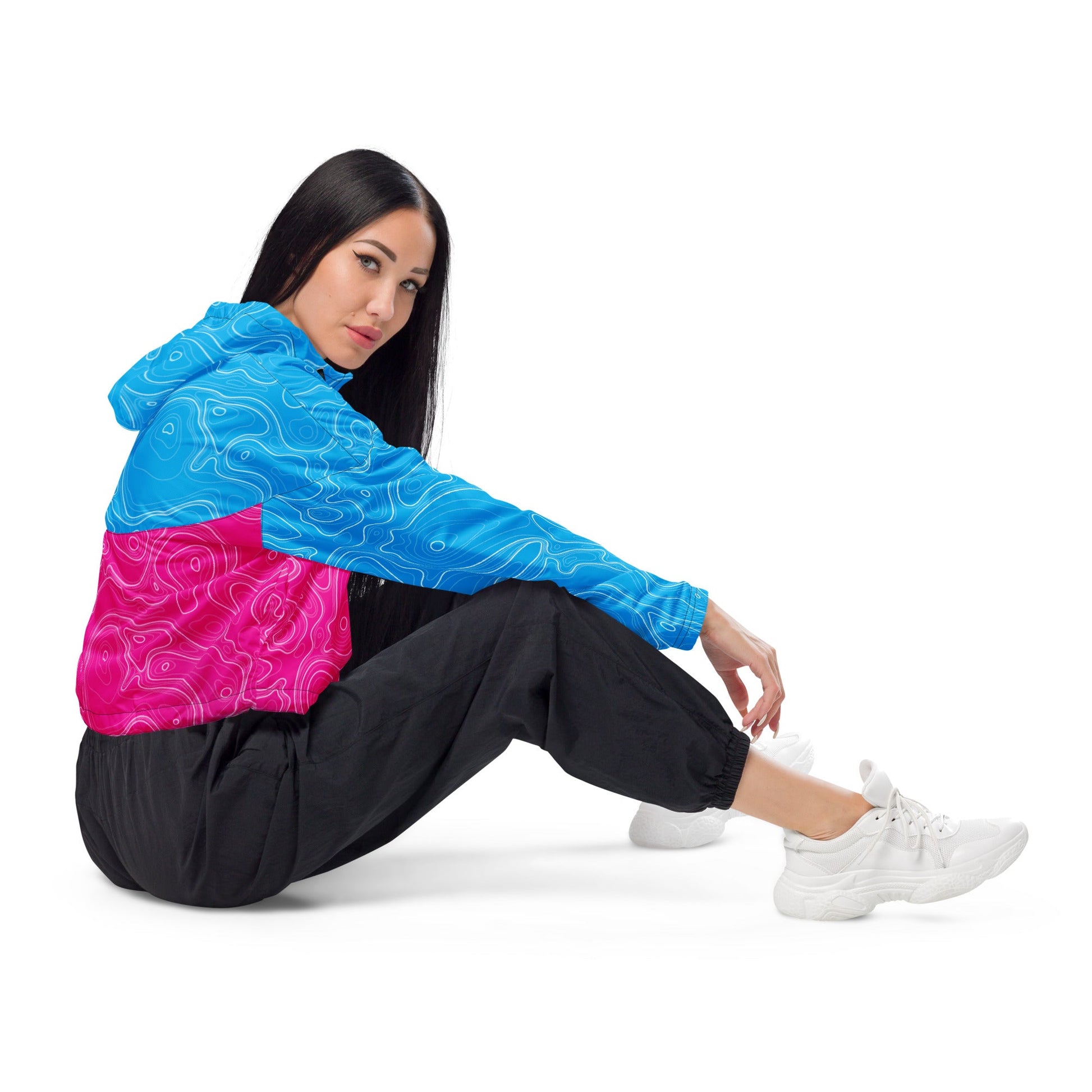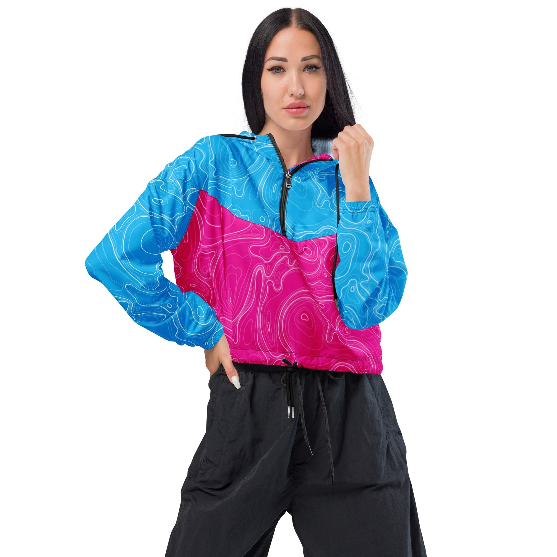Neon Topographic Women’s Cropped Windbreaker