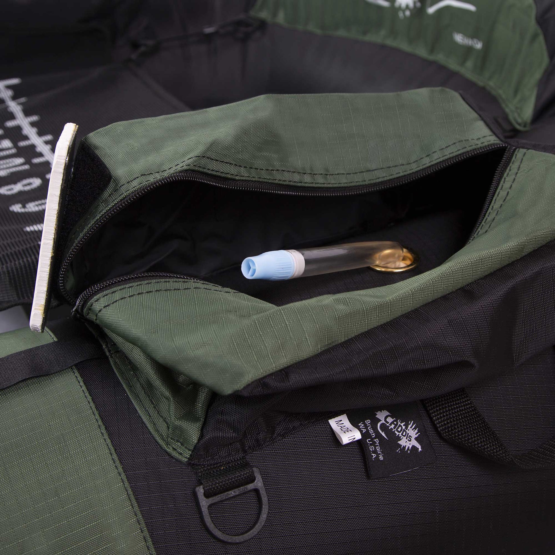 - ADDITIONAL FEATURES: Fishing friendly details include 2 main equipment pockets, padded stabilizer bar with attached stripping apron, front rod holder, multiple D-rings, and a dry-fly patch.
