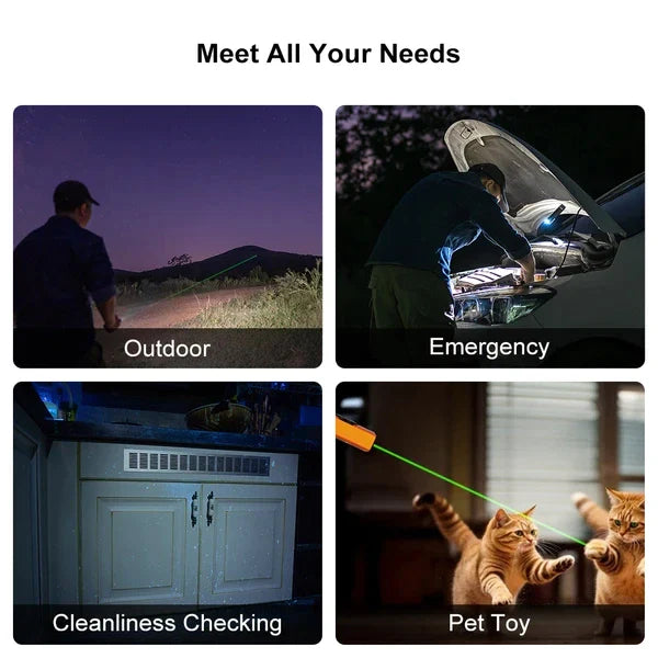 ● Pro White Light & Green Laser: White light for daily illumination, laser for pets toy / presentation, and the white light and laser can work in tandem for providing targeted point plus overall brightness.