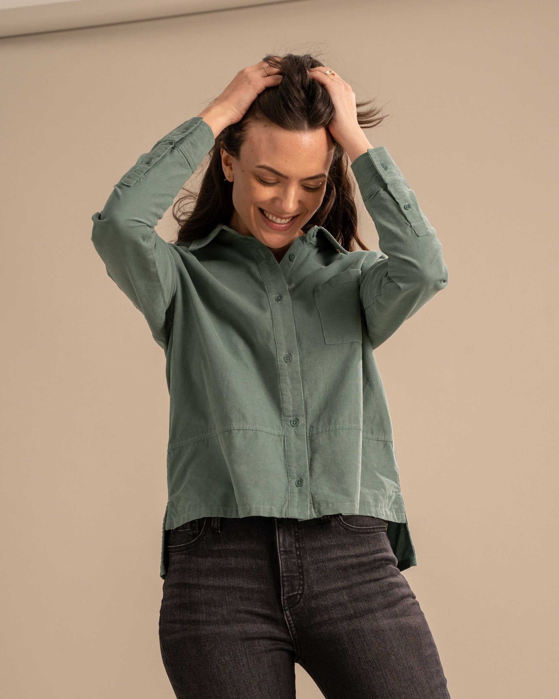 It didn't feel right to make a shacket-worthy shirt without covering it in corduroy for fall. This boxy button down is just the thing to add some dimension, warmth, and texture to your outfit without the commitment of a full on jacket. Cut roomy in the body and a little slimmer in the sleeves so you get a just-right oversized fit.