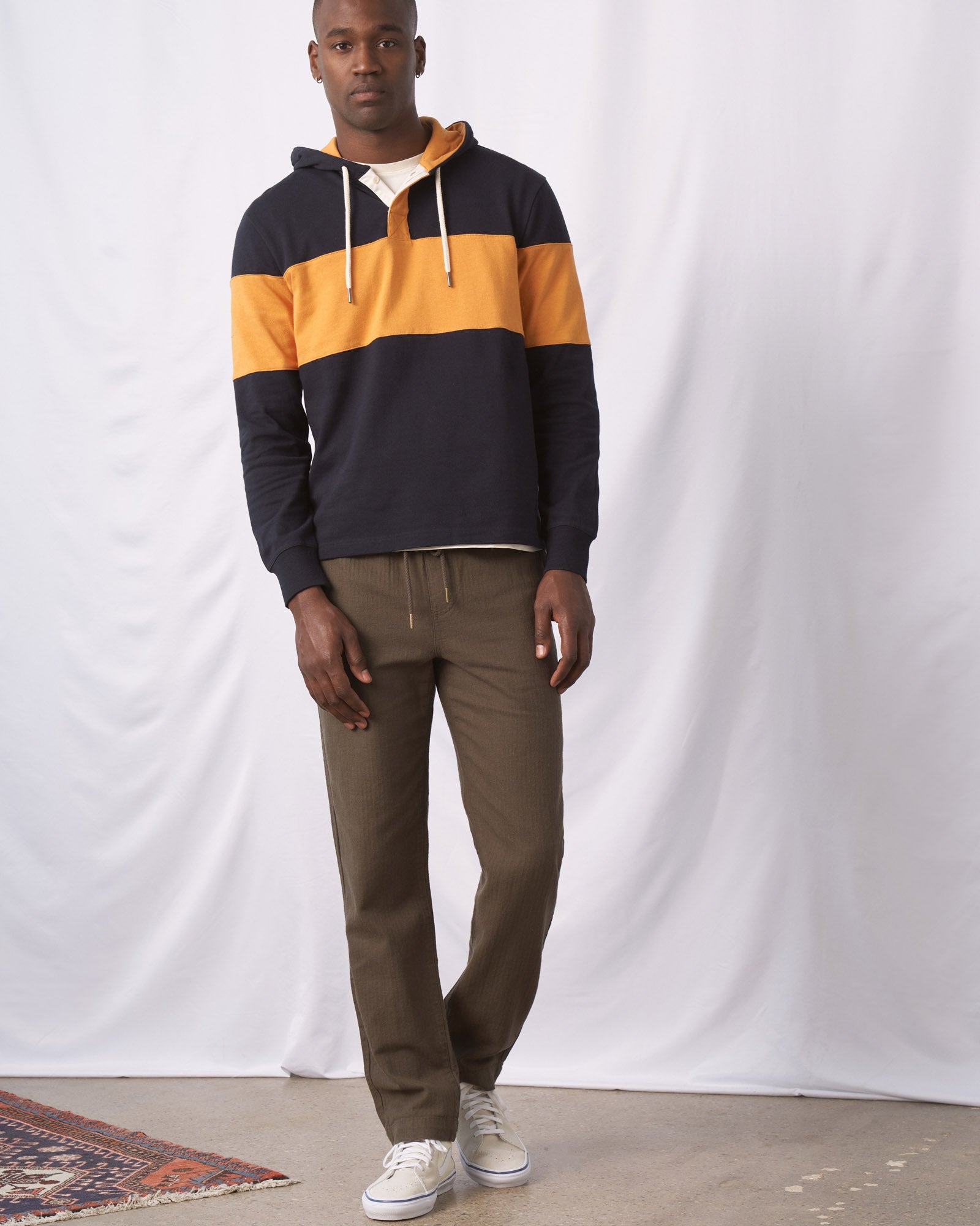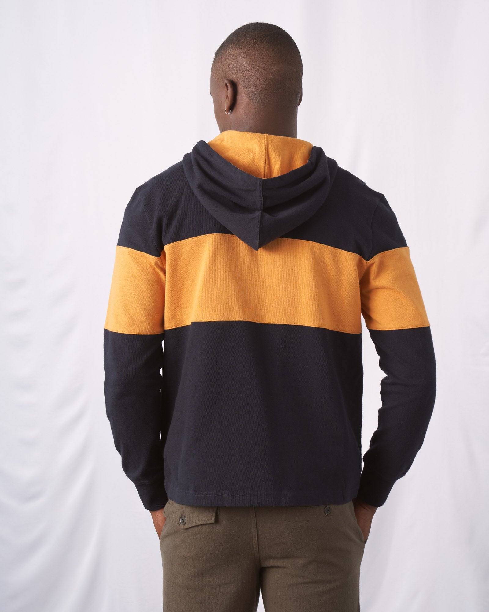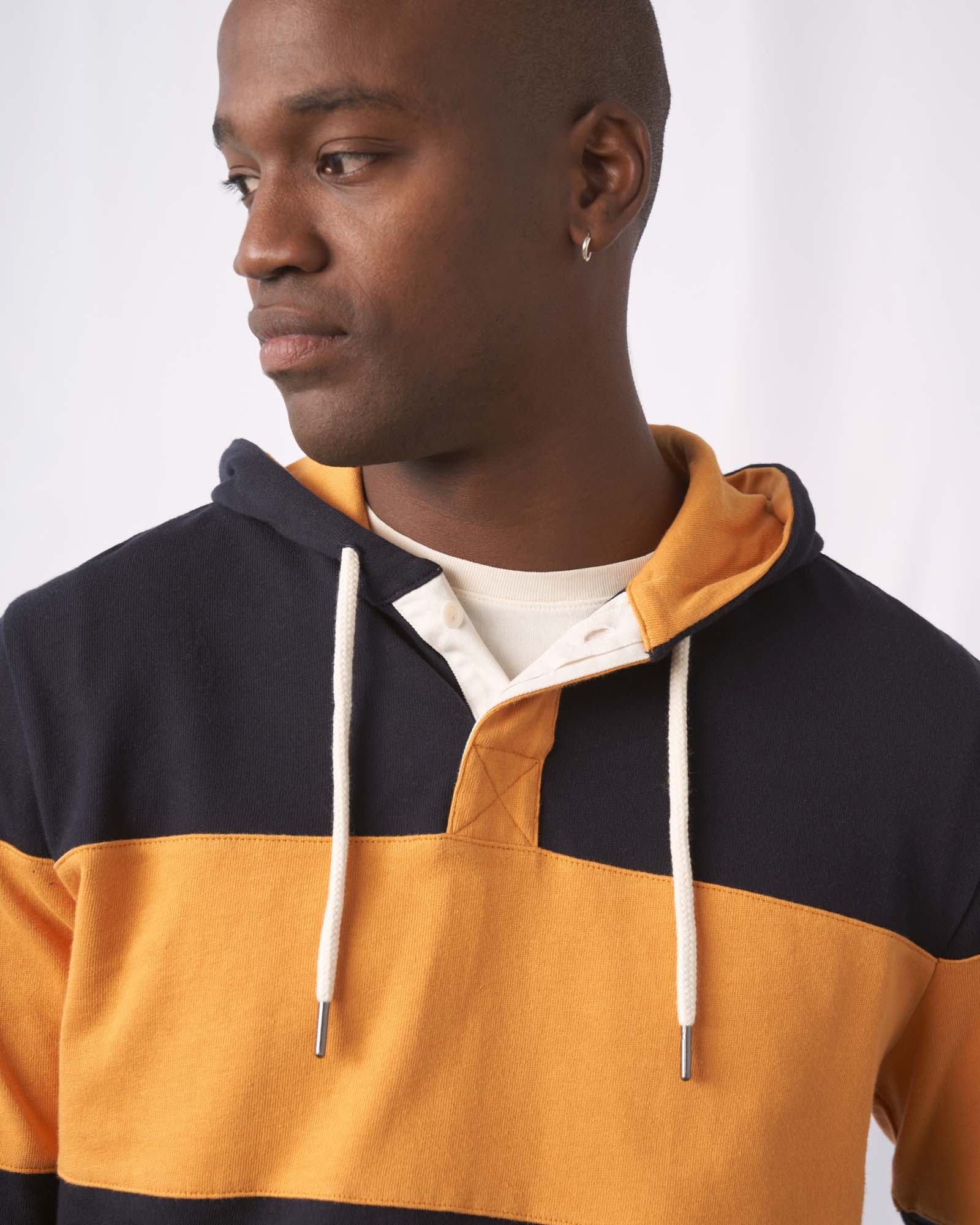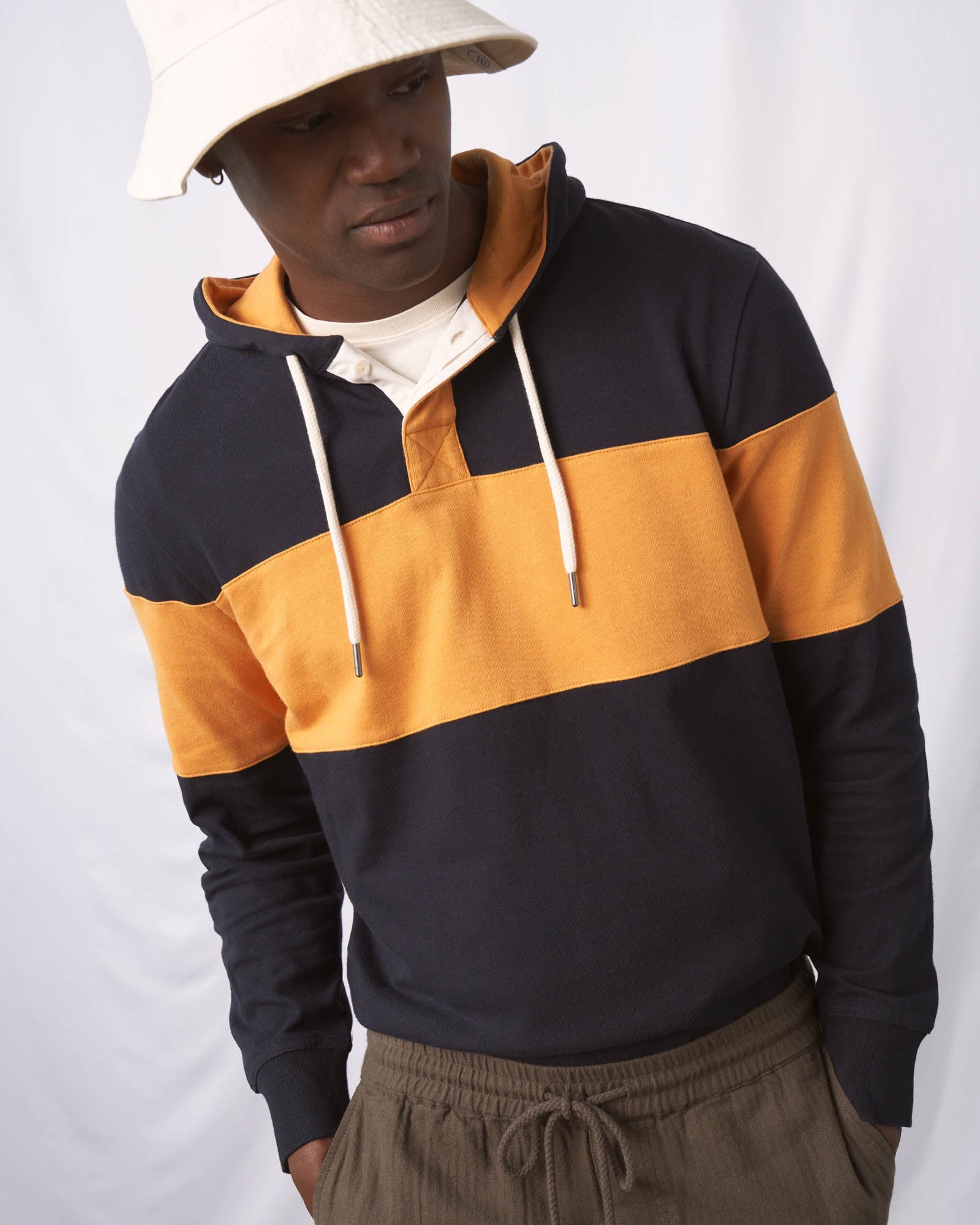 Fitted with 100% organic cotton, a renewable fiber that requires significantly less water than regular cotton and none of the pesticides, this modern rugby is a nod to the classic shirt that’s been worn on and off the pitch since the 1800s. We also gave it a hood, which probably wouldn’t be ideal for playing actual rugby, but we think it adds a nice touch for your casual wear.