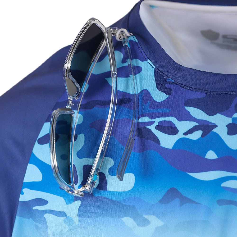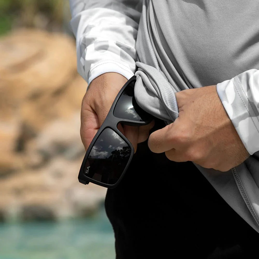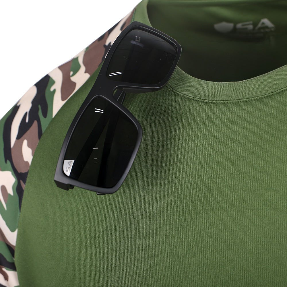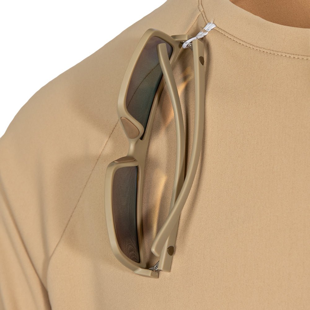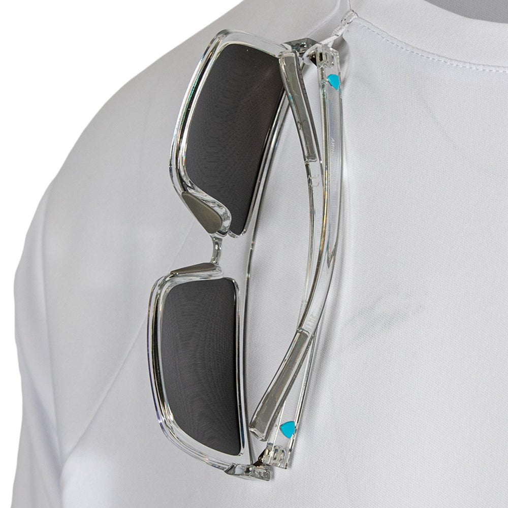 The Performance Shirts feature relaxed fit construction for optimal range of motion. Made of UPF 50+ 4 Way Stretch Material, designed to keep you cool and dry even on the hottest days. With features like mesh underarms and soft nylon threads, these are made for every activity. On the front neck you will find a sunglass holder loop and at the bottom hem is a hidden sunglass microfiber cleaning cloth.