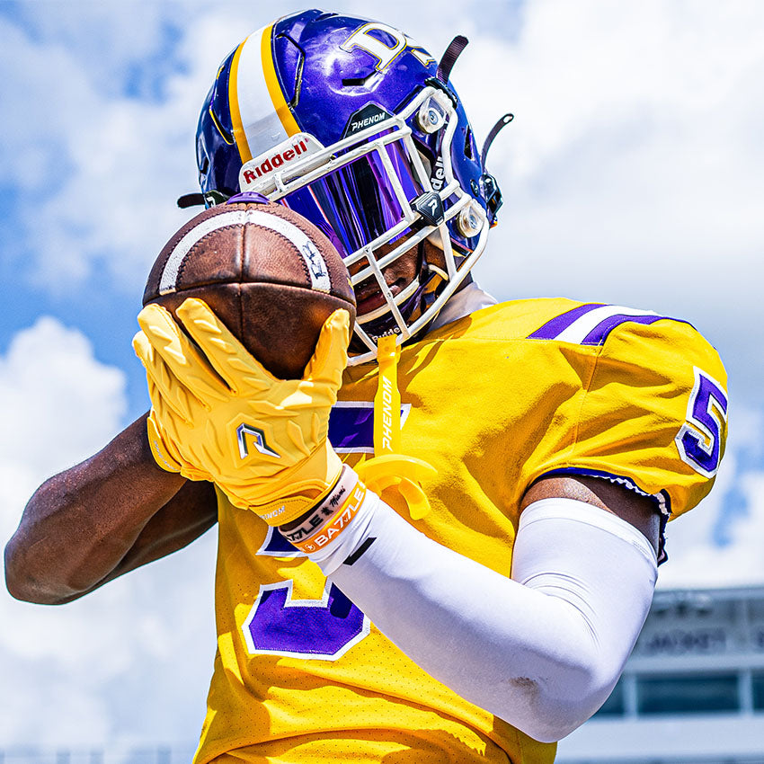 Introducing the 'Quantum Fierce' padded football gloves by Phenom Elite – the ultimate gloves for athletes of all positions seeking top-notch performance and protection. These gloves feature advanced padding technology for enhanced impact resistance and comfort. The breathable, moisture-wicking fabric ensures your hands stay dry and cool throughout the game, while the dual-layer palm design offers exceptional grip and durability.