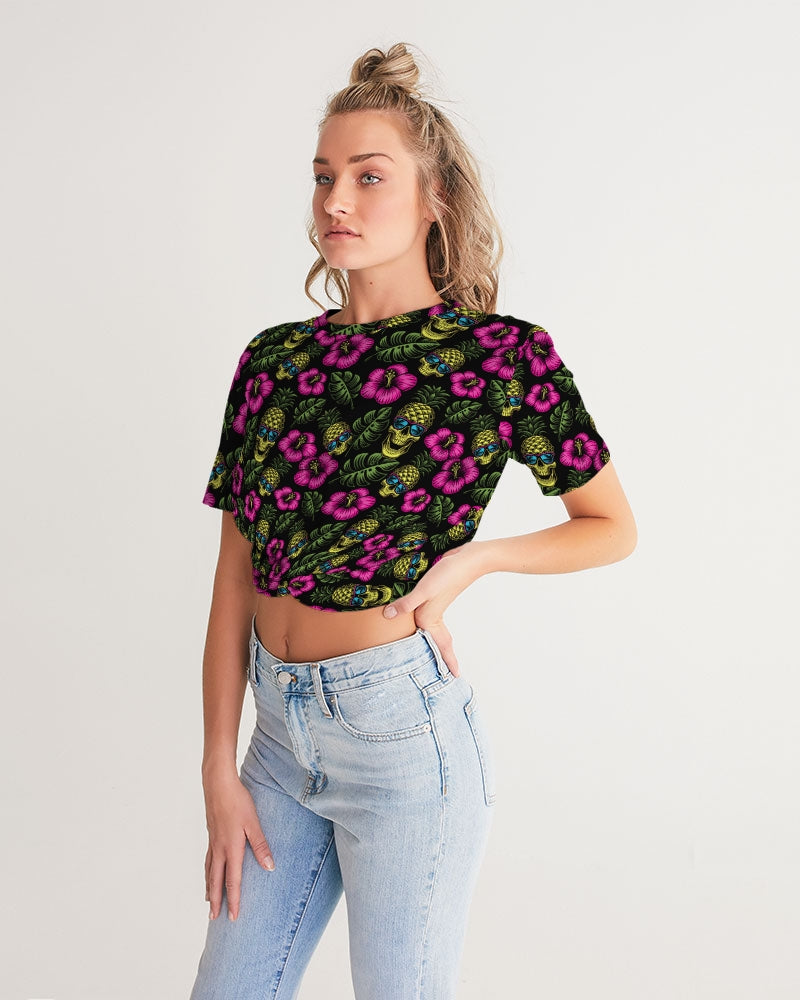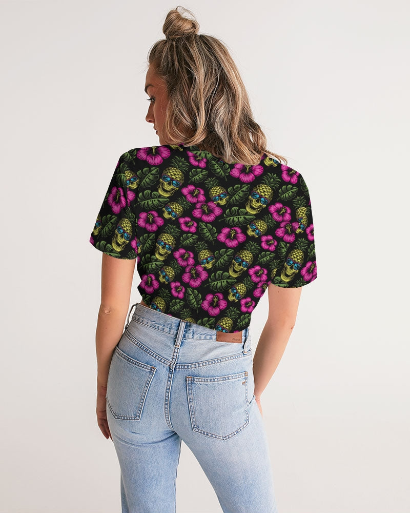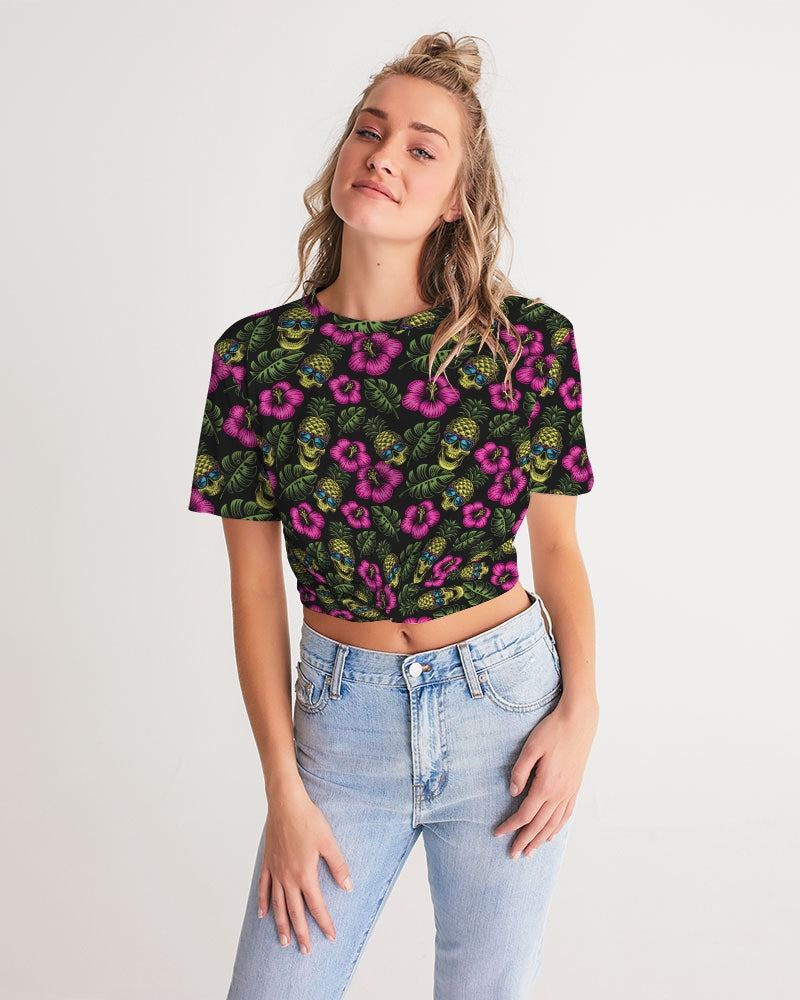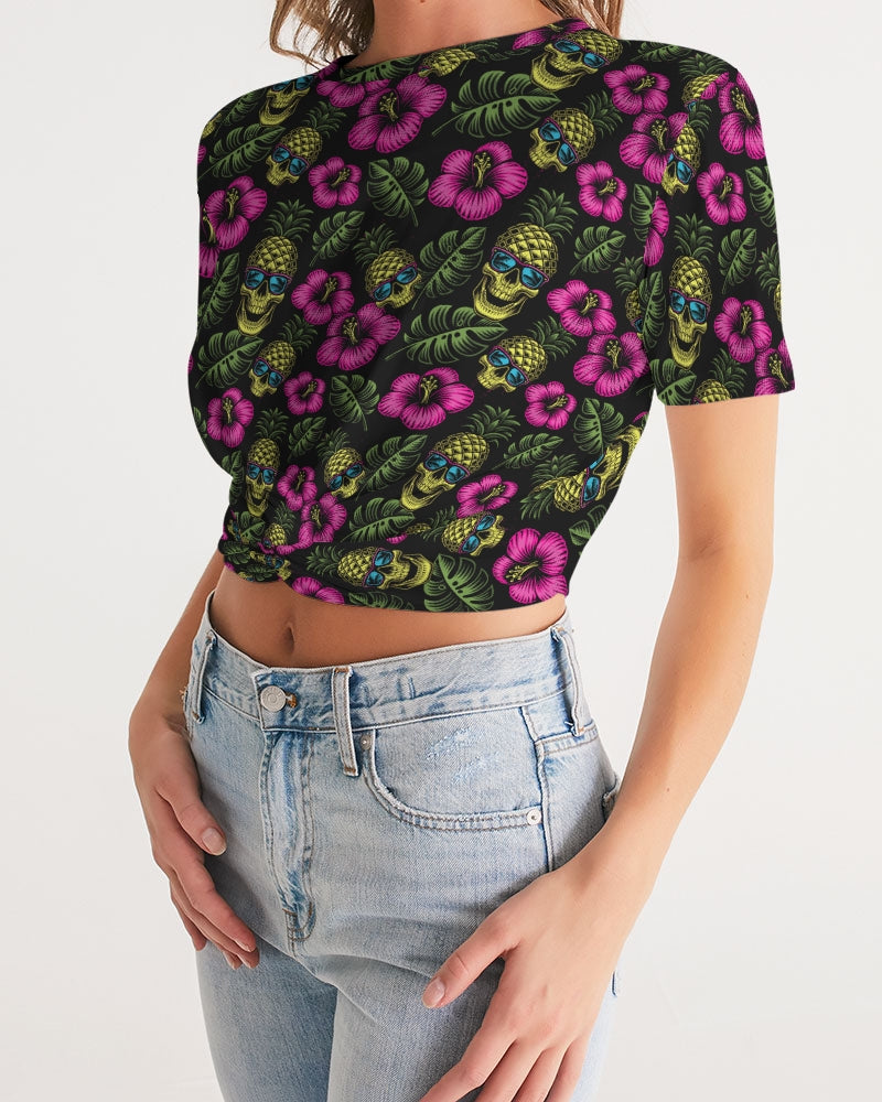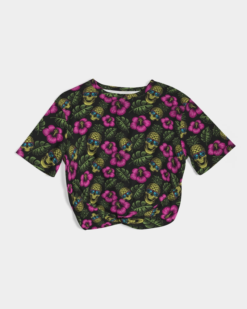 About The ArtPineapple Head . Product DetailsA tee with a twist will be your next new face for yoga or casual wear. Our Women's Twist-Front Cropped Tee is crafted from soft, breathable polyblend material to give you style but with an upgrade.
