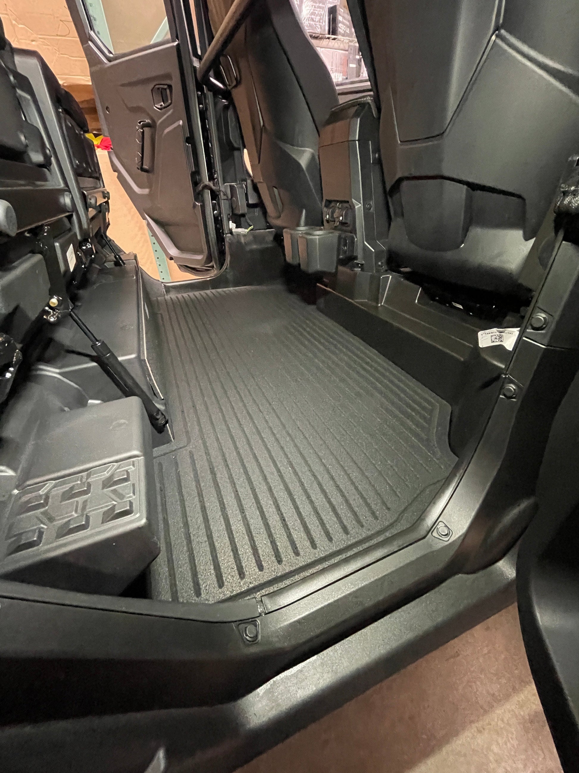 Terick is going to change the way you feel about floor mats in your UTV. Gone are the days where your feet slide around on the slippery, hard plastic factory floor. We are now offering a solution - a heavy duty rubber mat that is custom-cut and made to stay in place by design. Unlike some other floor mats out there, our mats feature deep grooves that will collect mud and dirt that will no doubt find its way into your UTV. No hooks, screws, or attachments needed! Like a lot of our products, these floor mats will insulate the floor and help reduce the noise in the cab. Choose the most popular name in UTV sound reduction. Choose Terick Solutions!