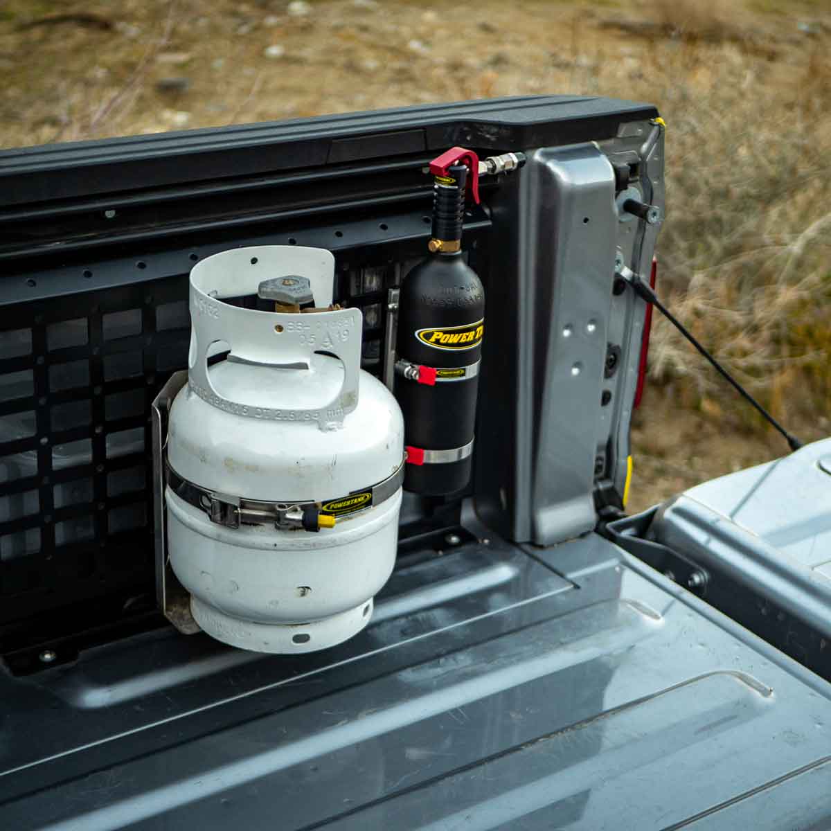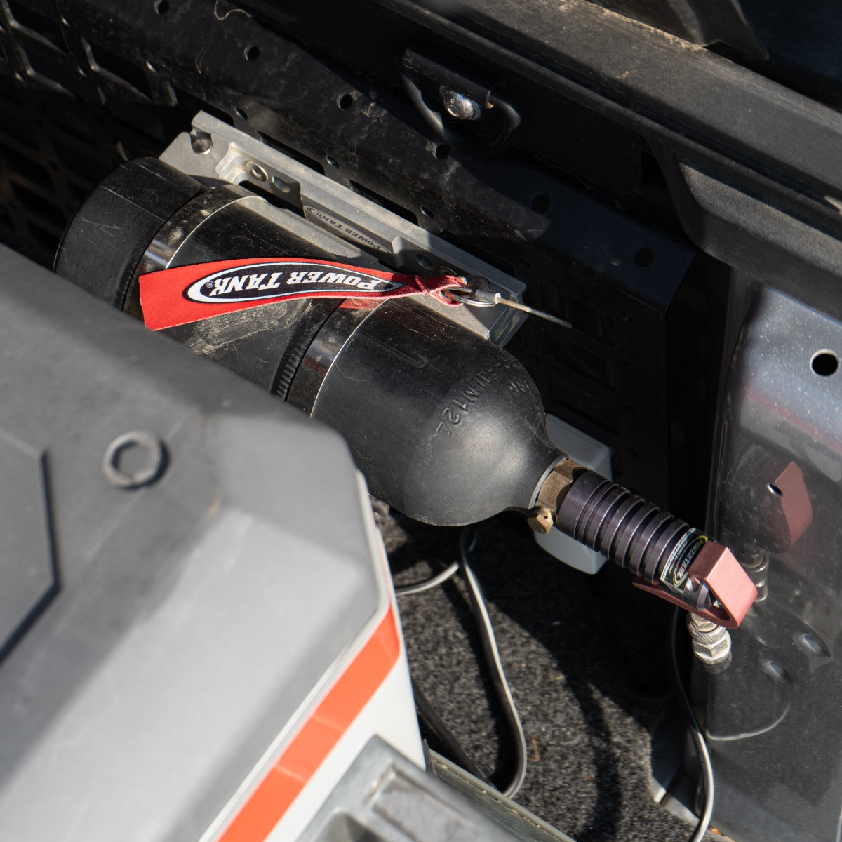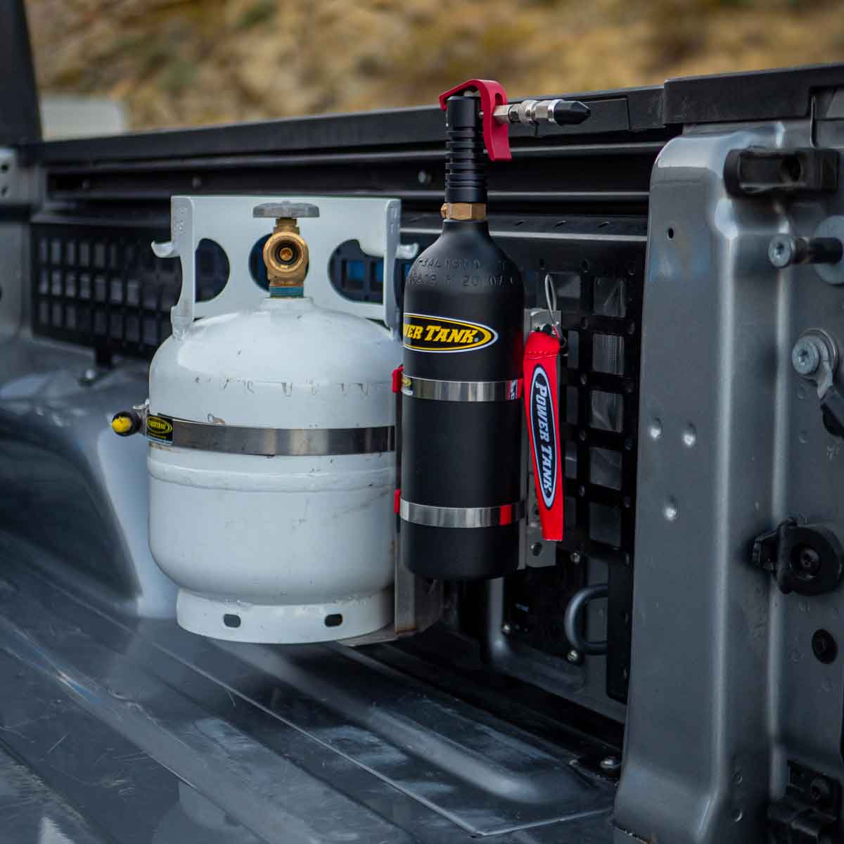 The MOLLE Edition adds a Quick Release Bracket and a back plate for easy mounting to bed racks, bed side organizers, MOLLE Panels, or any other flat surface. The Quick Release Bracket is made from billet aluminum and does not rattle off road. The Backing Plate is pre-threaded for a five-minute install. Mount it near a tailgate or other easy to access spot to have instant pressurized air at a moments notice.