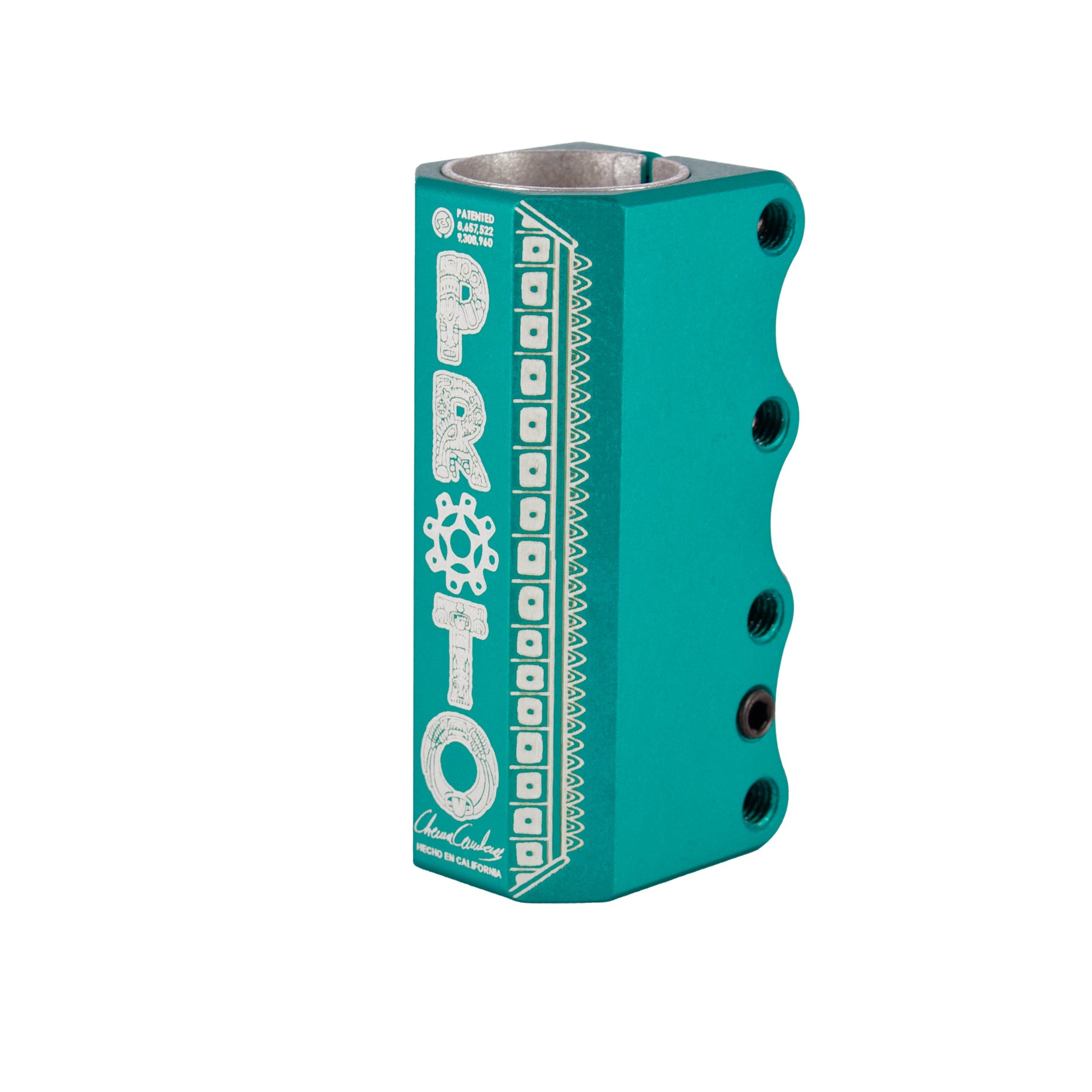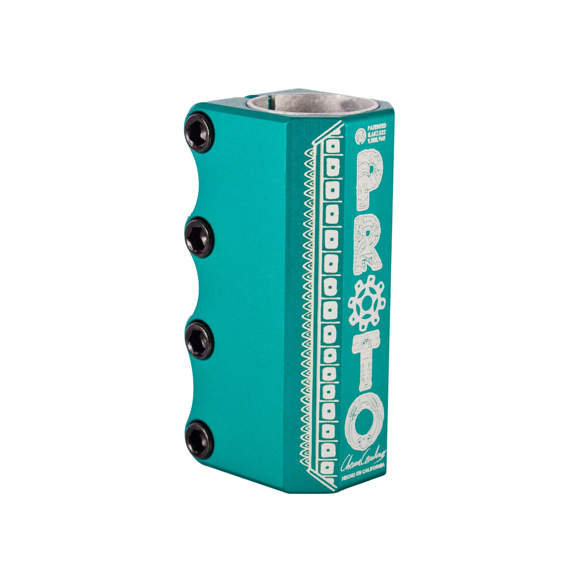 The PROTO SCS is the original and first Standard Compression System that has become the industry standard since its inception. Created, designed, tested, manufactured and Patented in Vista, CA by Andrew Broussard. Andrew is one of a handful of riders who got fed up with incompetent, faulty and flat out bad scooter designs that were on the market back in the day. His ideas became his realities through the creation of parts specifically designed to make a stronger, lighter and better performing scooter. Trial and error evolved each design which lead to the creation of the brand known as PROTO. Since its inception in 2008 PROTO has been the bench mark that all others have followed and evolved from. PROTO prides itself in being on the innovative forefront of freestyle scooter product development and design. The 4 Inch PROTO Scooters Full-Knuckle SCS works with both Standard and Over-Sized handlebars. Made in San Diego California, this is not only the original SCS clamp, but still the strongest and most reliable SCS made. This SCS Full-Knuckle is built to perform and last and carries a Lifetime Warranty against cracking. PROTO – Stickers included! Ride the original, ride PROTO.