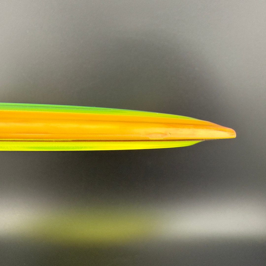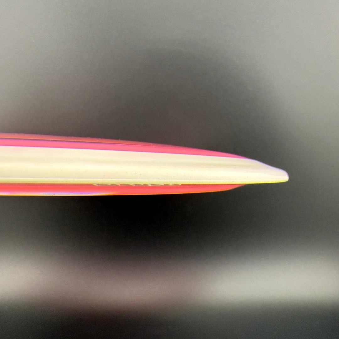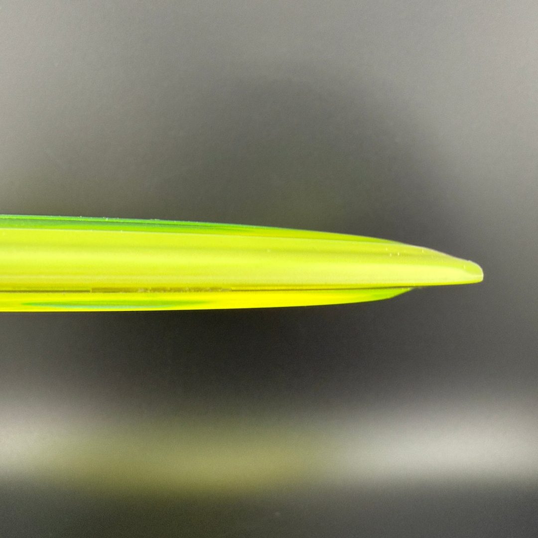 Proton is a beautiful and durable blend in the MVP line. Like all MVP discs, Proton has two separate plastics; a transparent flight plate in vivid colors, and a black solid outer rim.
