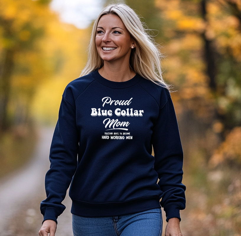 Proud Blue Collar Mom - Crew Sweatshirt - Navy
