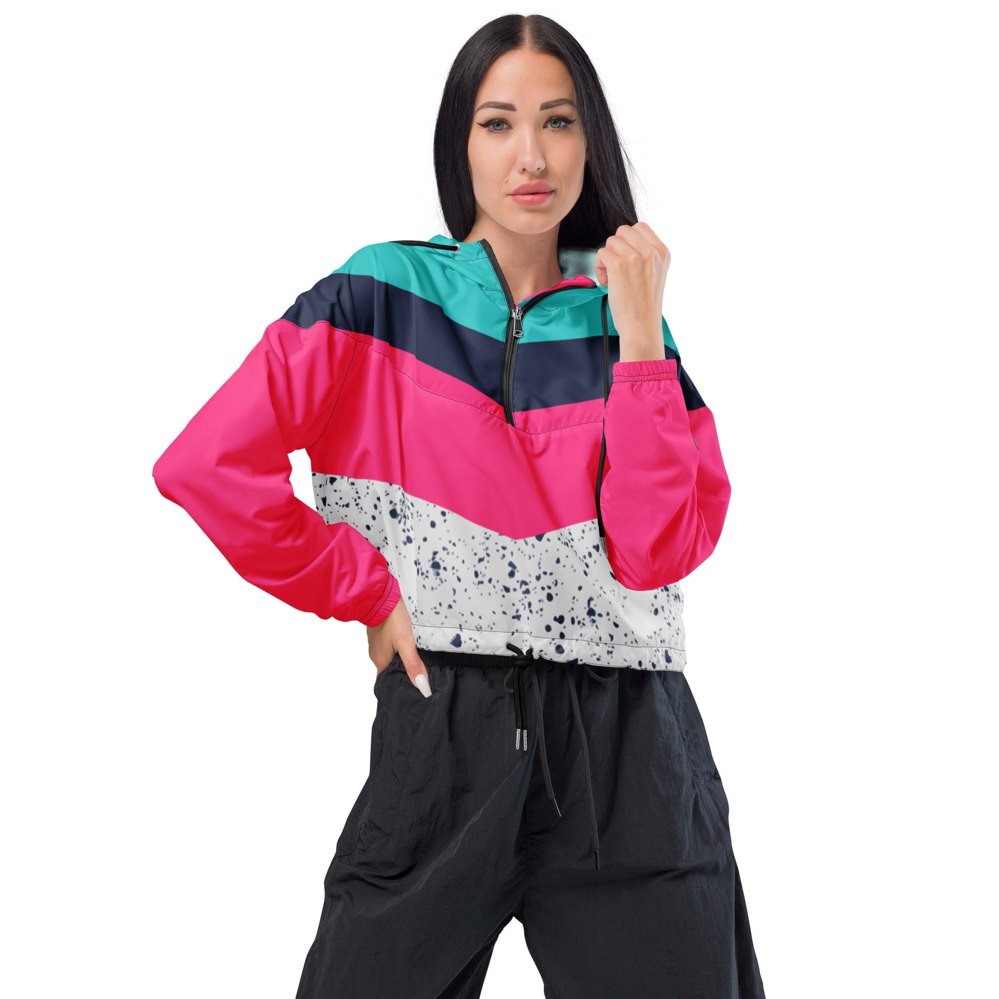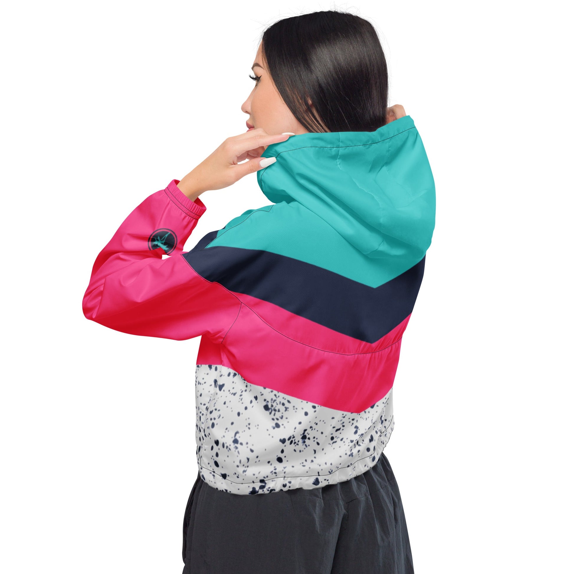 Hike in style without the rain getting in the way—this cropped windbreaker is lightweight, waterproof, and suitable for every kind of adventure. Features include side-slit pockets, breathable mesh lining, and adjustable drawcords on the hood and waist to support all your stylish outdoor looks.