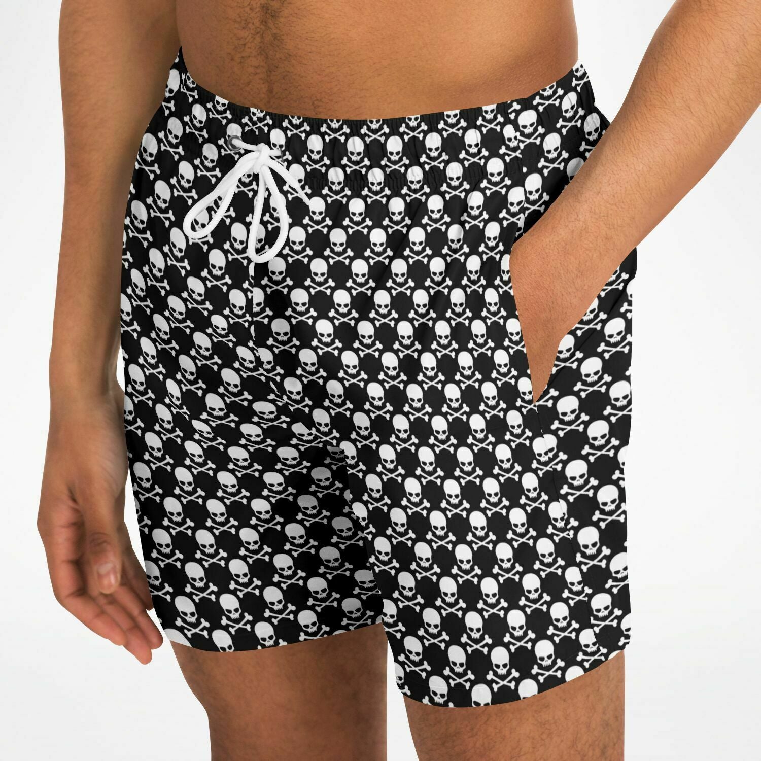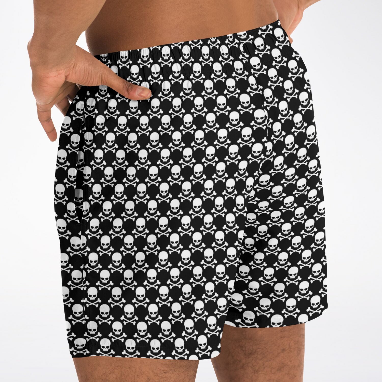 Look and stay cool with these shorter-length swim trunks that hit above the knee. They come in a fast-dry fabric, and feature a drawstring waistband, mesh basket lining and mesh-lined side pockets.