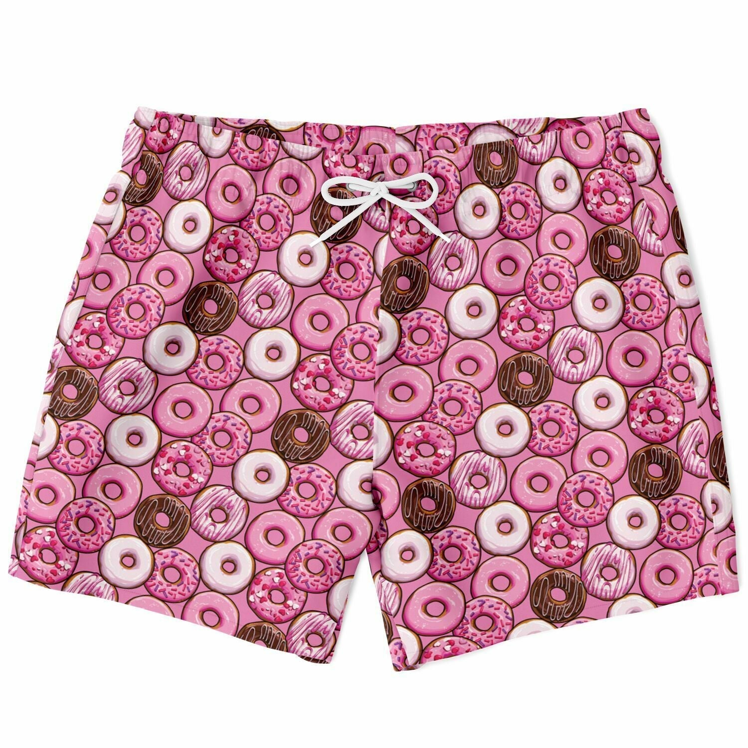 Look and stay cool with these shorter-length swim trunks that hit above the knee. They come in a fast-dry fabric, and feature a drawstring waistband, mesh basket lining and mesh-lined side pockets.