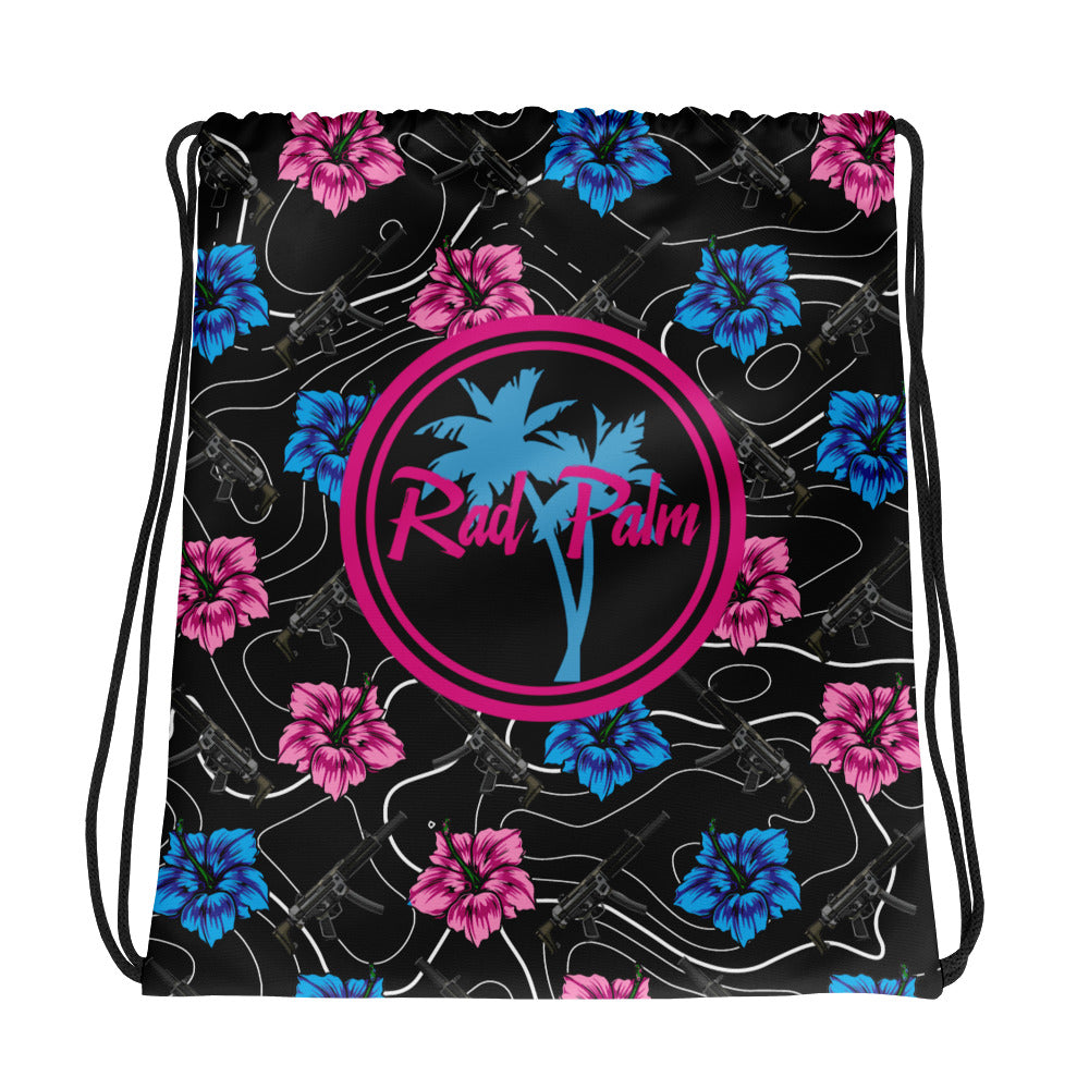 Rad Palm High Capacity Hibiscus Black Drawstring Bag