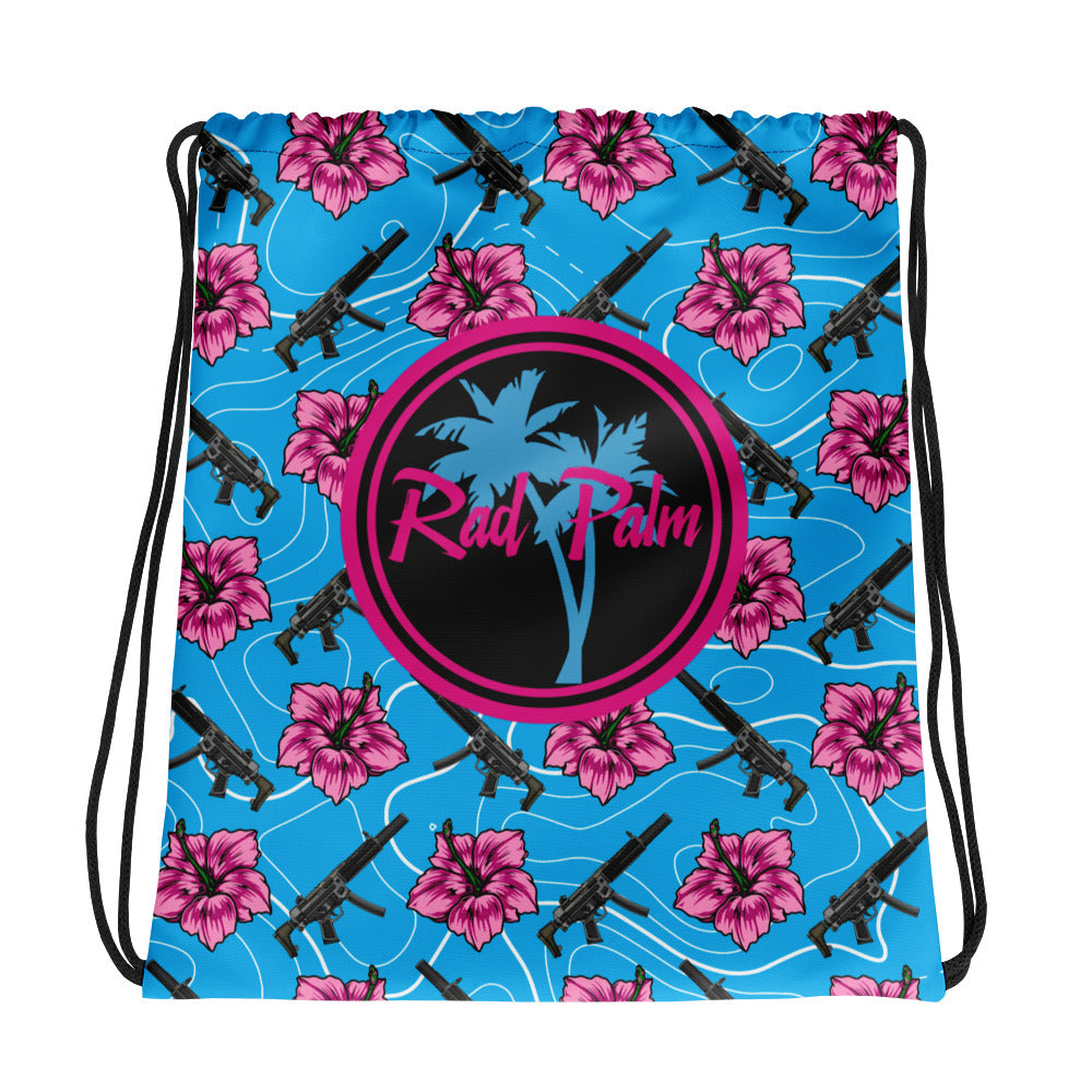 Rad Palm High Capacity Hibiscus Blue Drawstring Bag