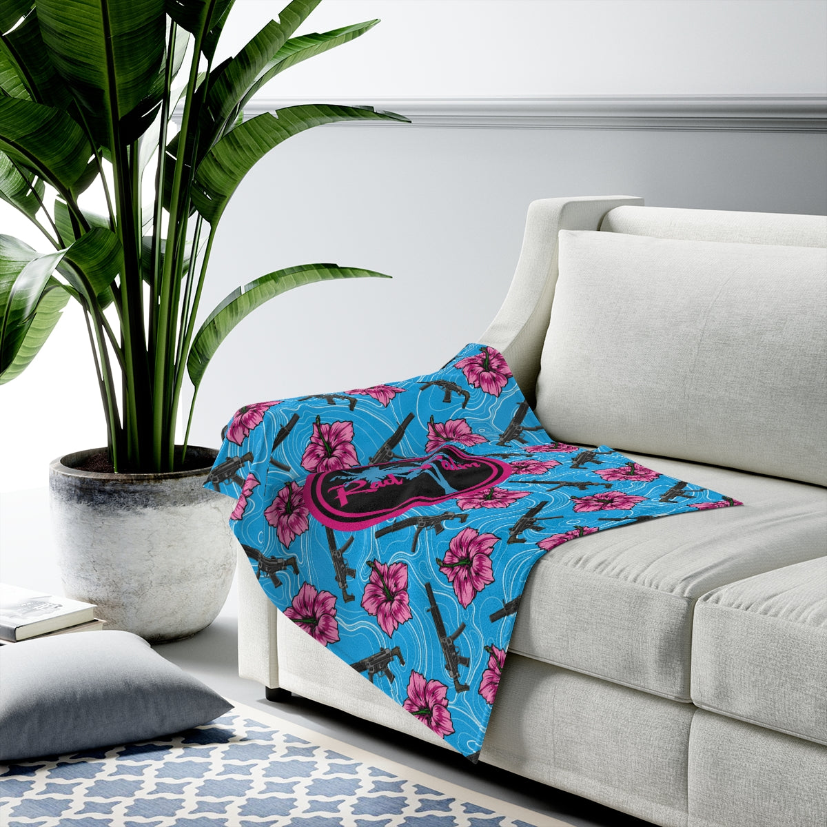 Rad Palm High Capacity Hibiscus Blue Velveteen Plush Blanket
