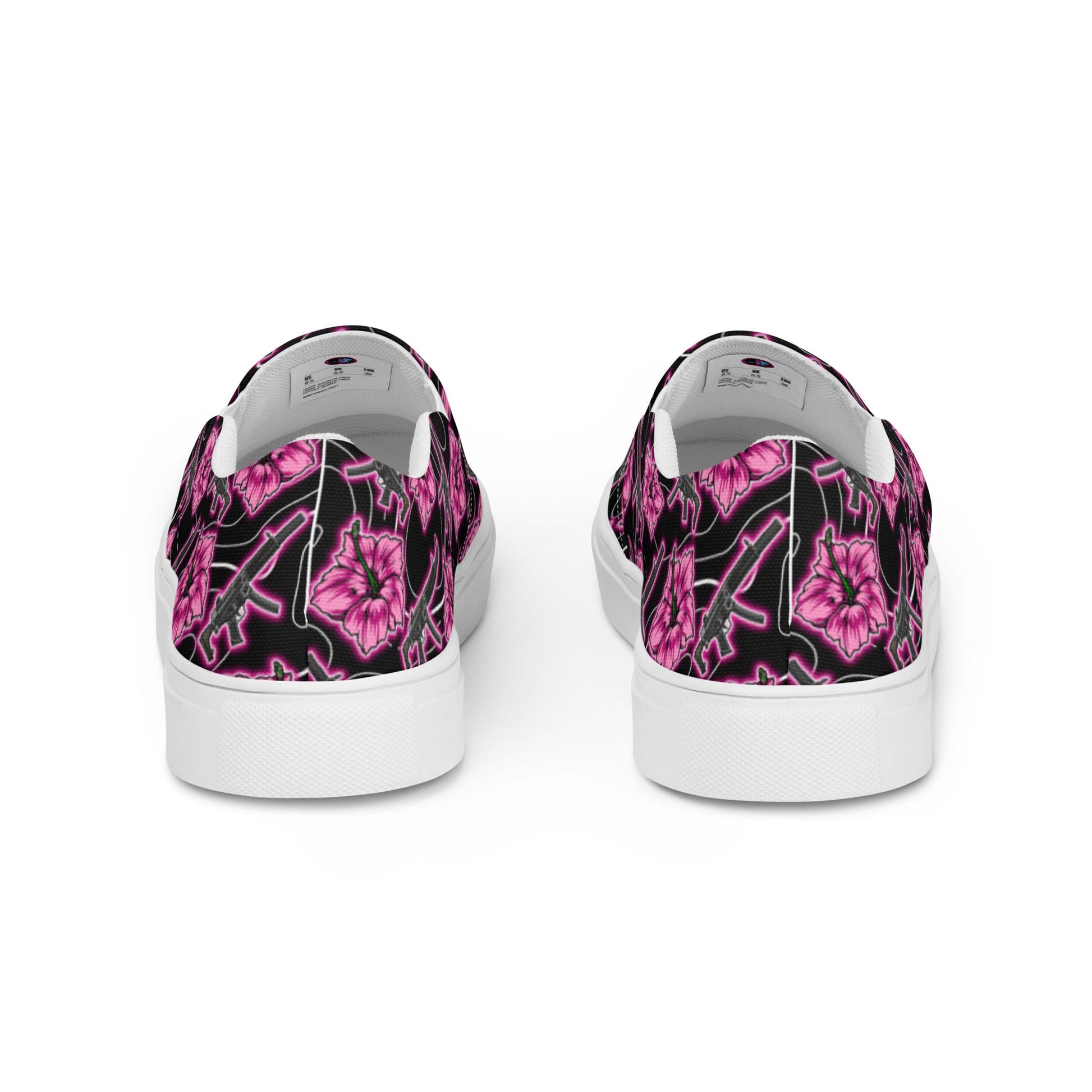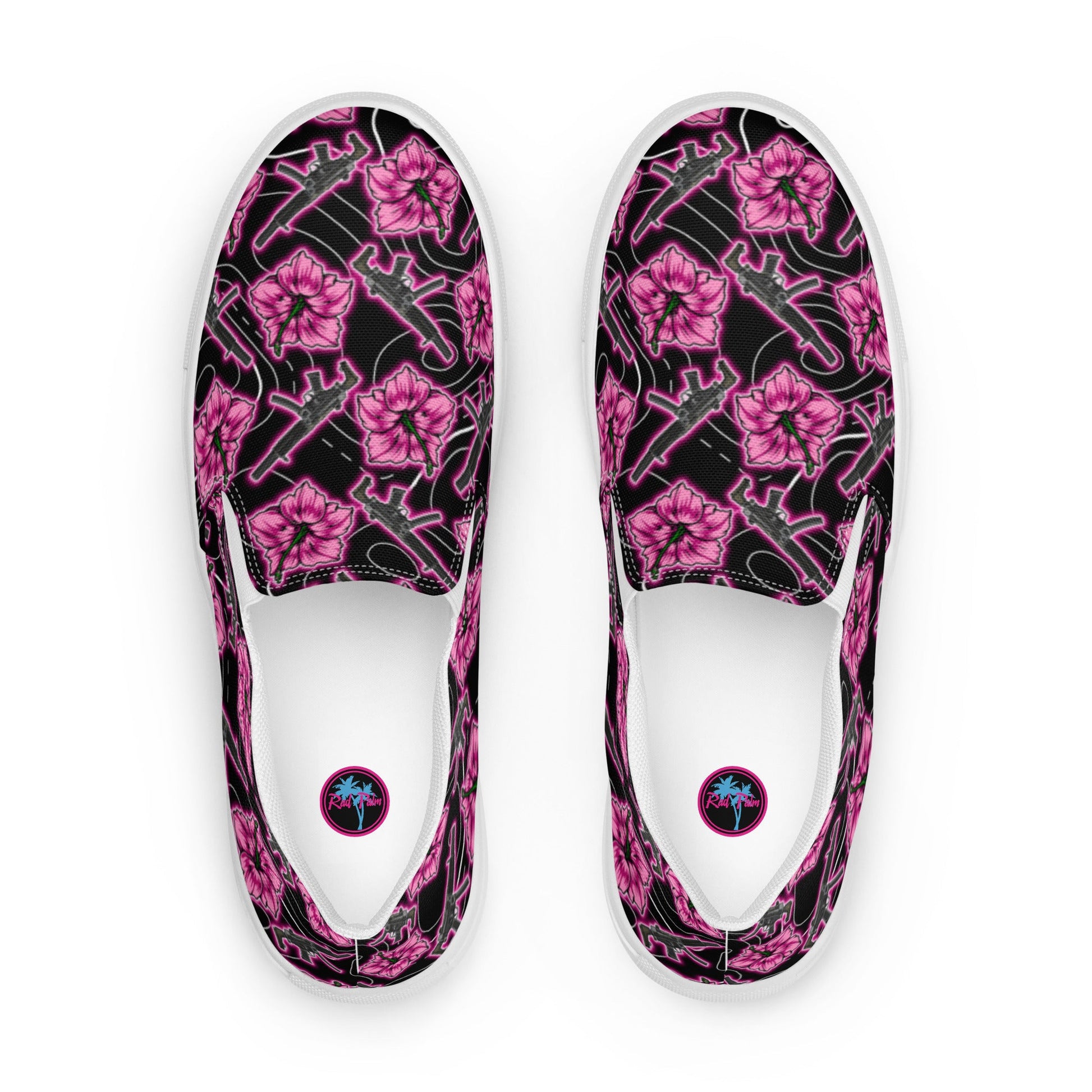 Rad Palm High Capacity Hibiscus Neon Black Women’s Slip-On Canvas Shoes