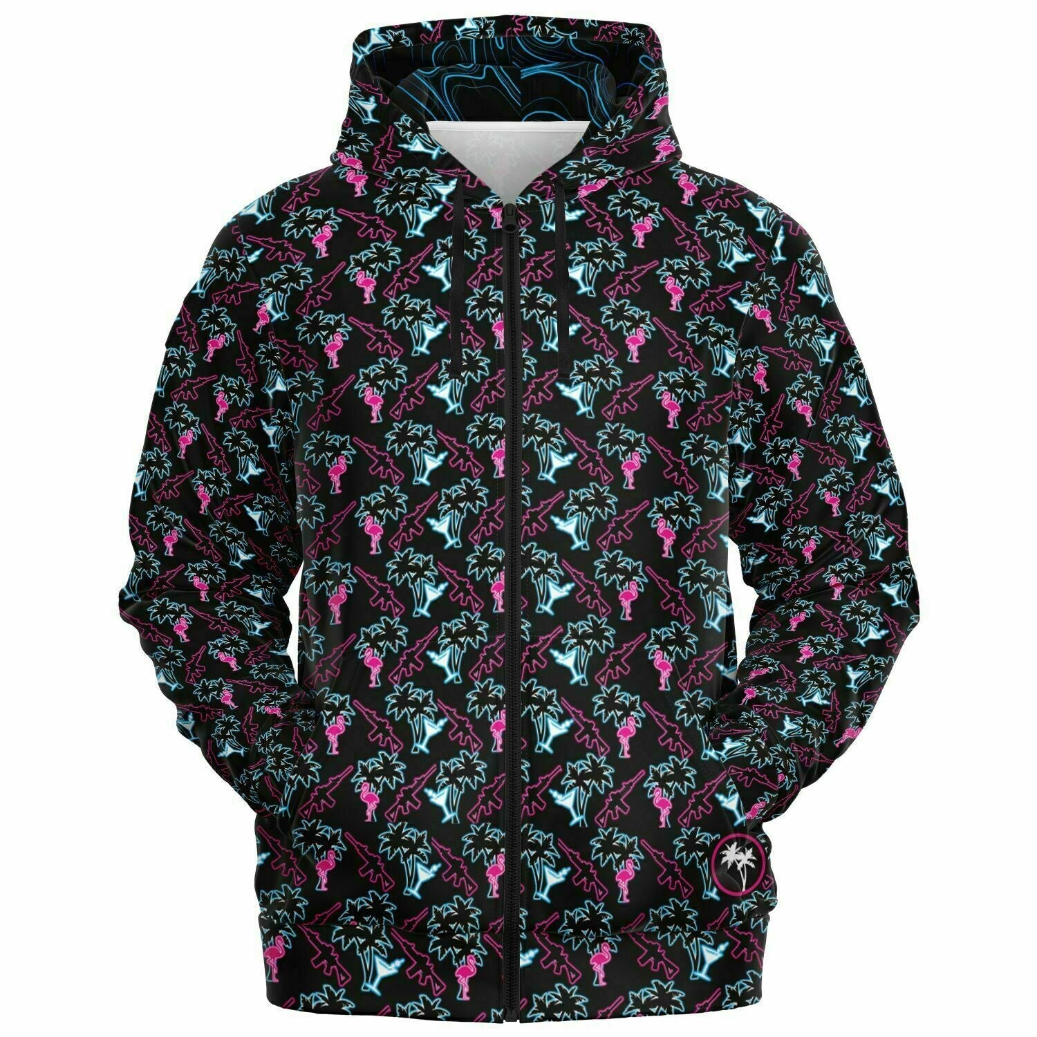 This zip-up hoodie is crafted from a premium polyester and spandex blend, making it both comfortable and durable. Each panel is individually printed, cut and sewn to ensure a flawless graphic with no imperfections. It also comes with a visible nylon zipper front closure. And high definition printing makes these a pleasure to wear for all occasions.