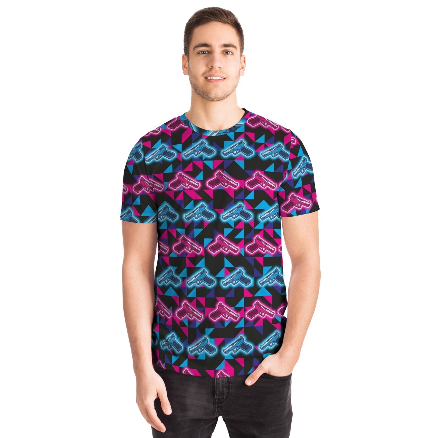 Featuring a crew neck, short sleeves, and a premium 100% polyester fabric with a cotton handfeel, and high definition printing that won't fade after washing.