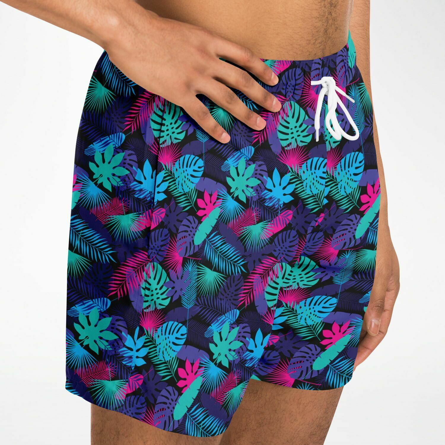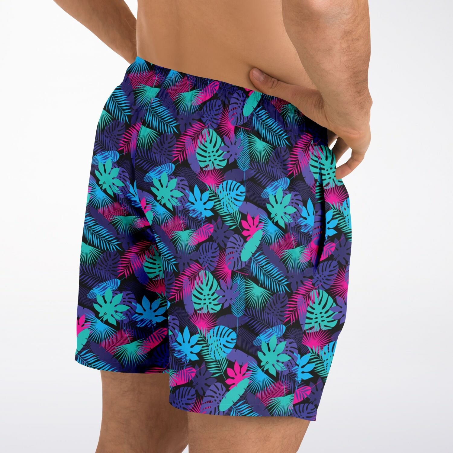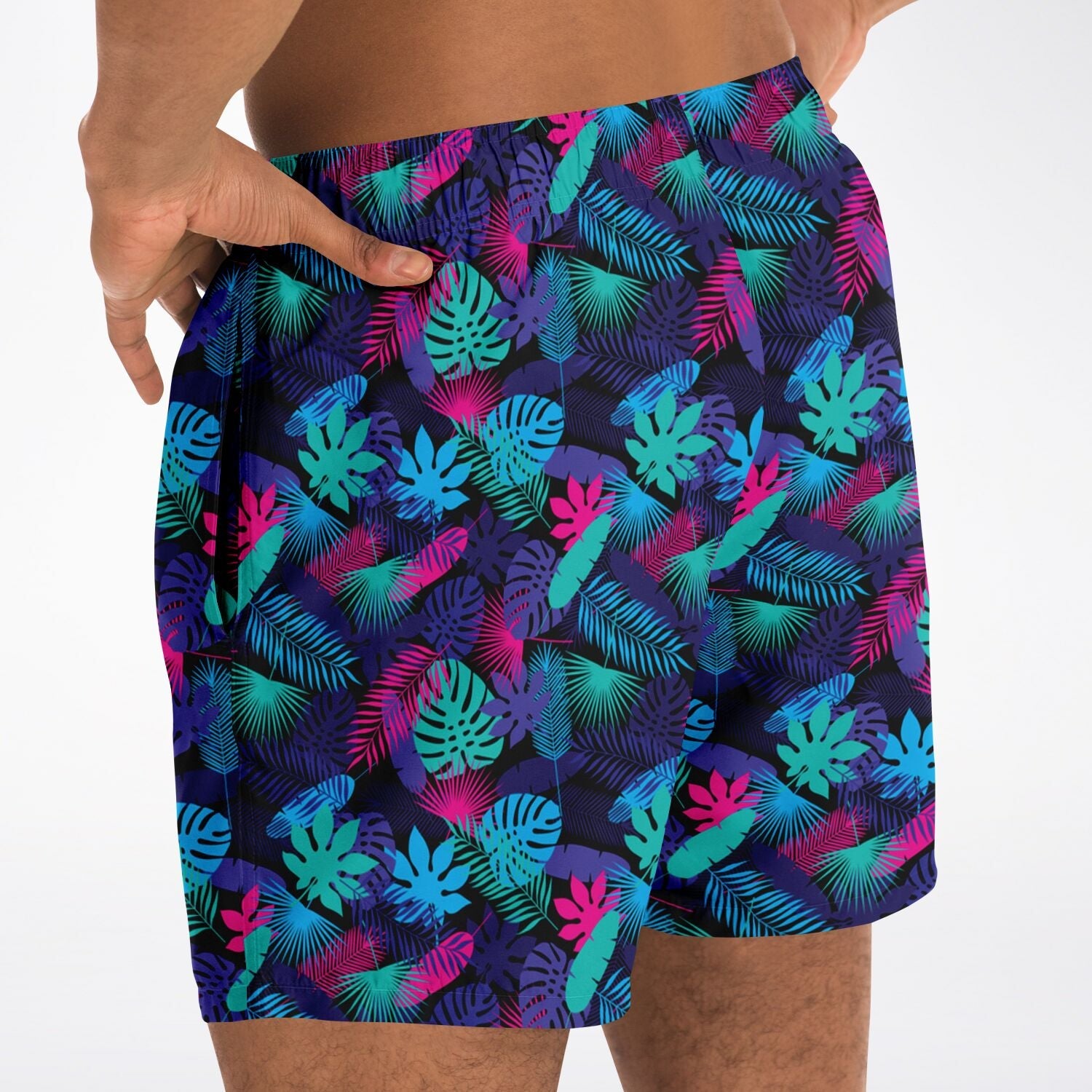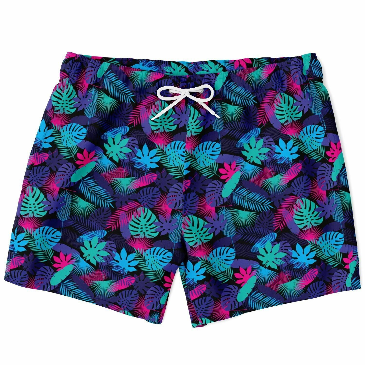 Look and stay cool with these shorter-length swim trunks that hit above the knee. They come in a fast-dry fabric, and feature a drawstring waistband, mesh basket lining and mesh-lined side pockets.