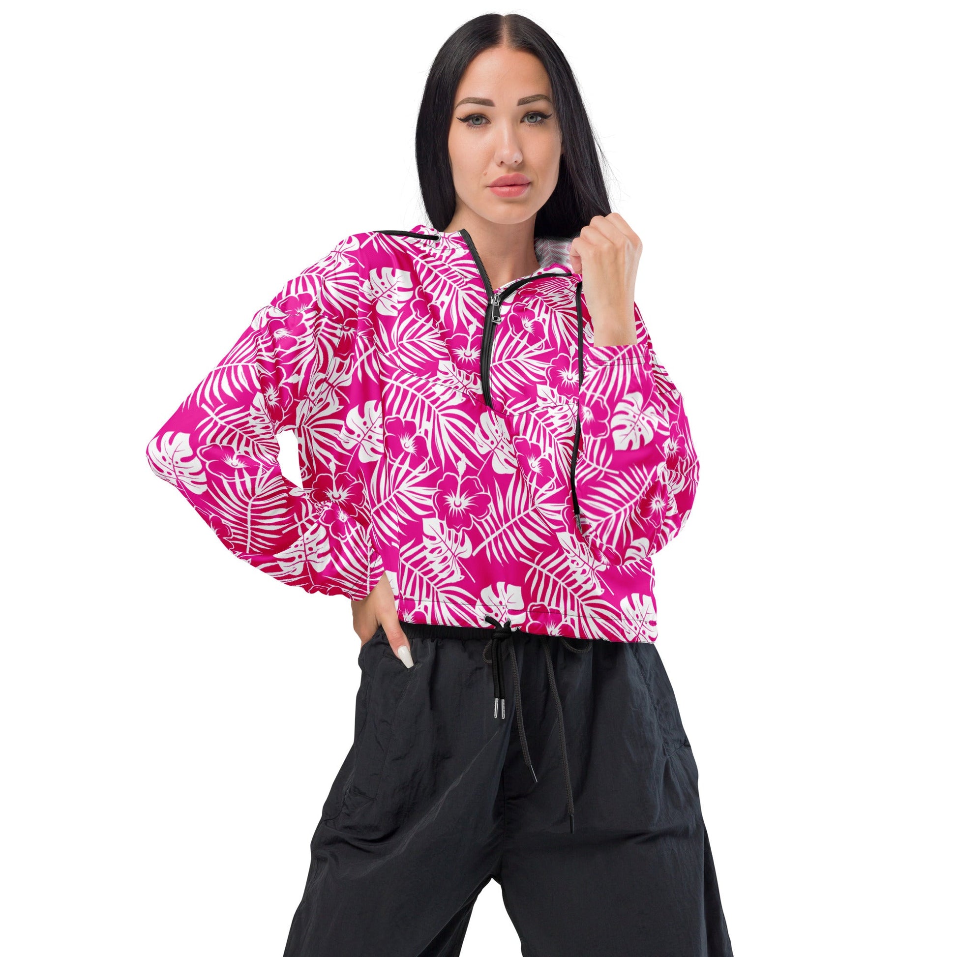 Rad Palm Pink Aloha Women’s Cropped Windbreaker