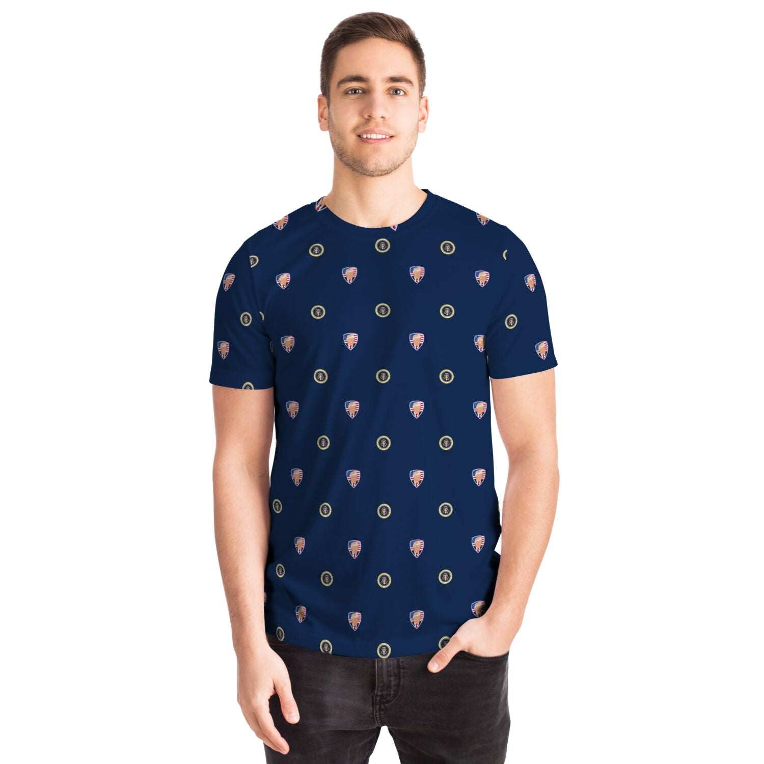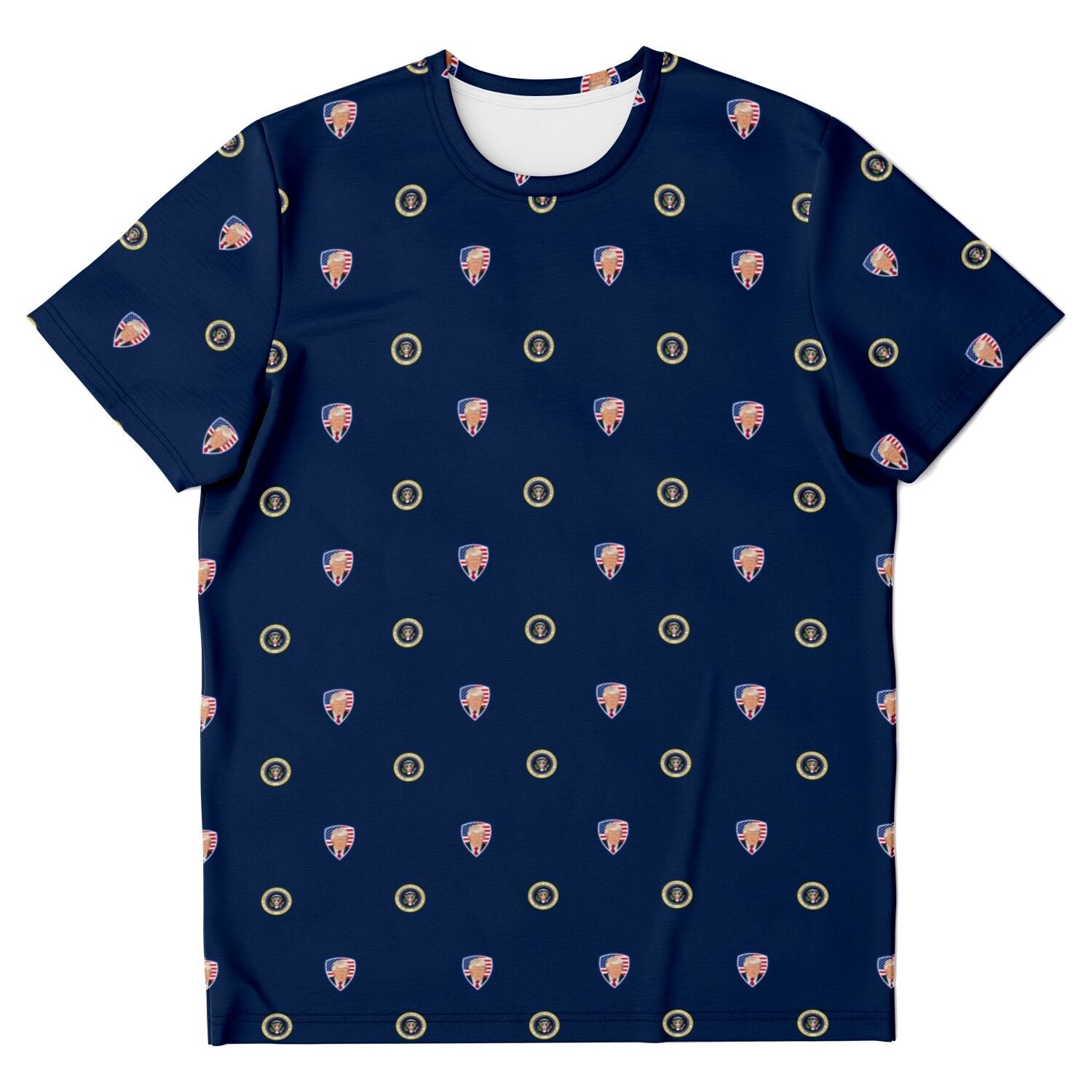 Featuring a crew neck, short sleeves, and a premium 100% polyester fabric with a cotton handfeel, and high definition printing that won't fade after washing.