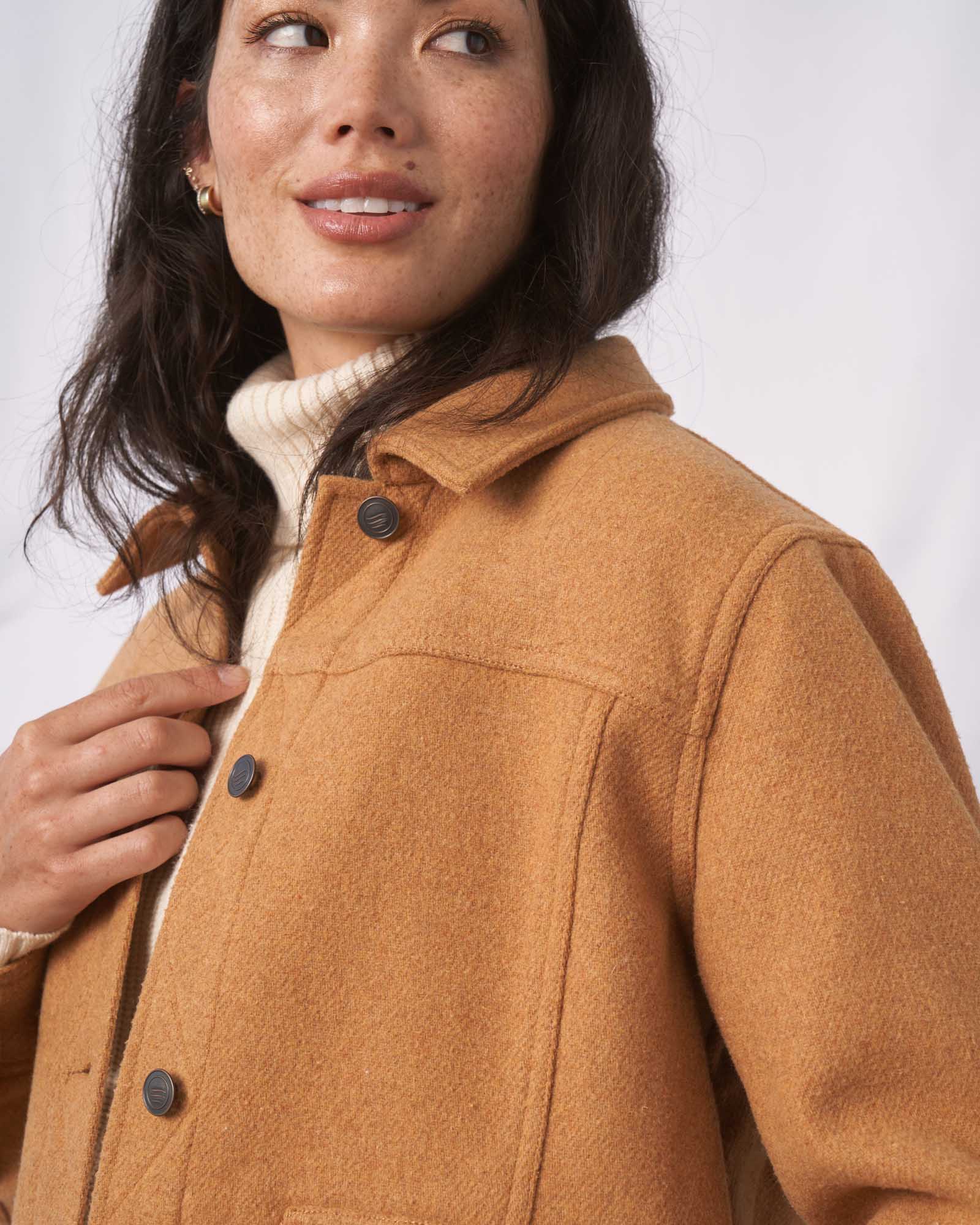 Substantial. The Recycled Trucker Jacket is a heavyweight layer made from a thick recycled wool blend and roomy enough to toss over even your chunkiest sweaters. What’s up with the virgin poly? This item was mistakenly made with it instead of our usual recycled stuff. That’s not our style, but neither is waste, so we decided to let it stick around. Don’t worry, it still holds its weight in the trash-cleaning department.