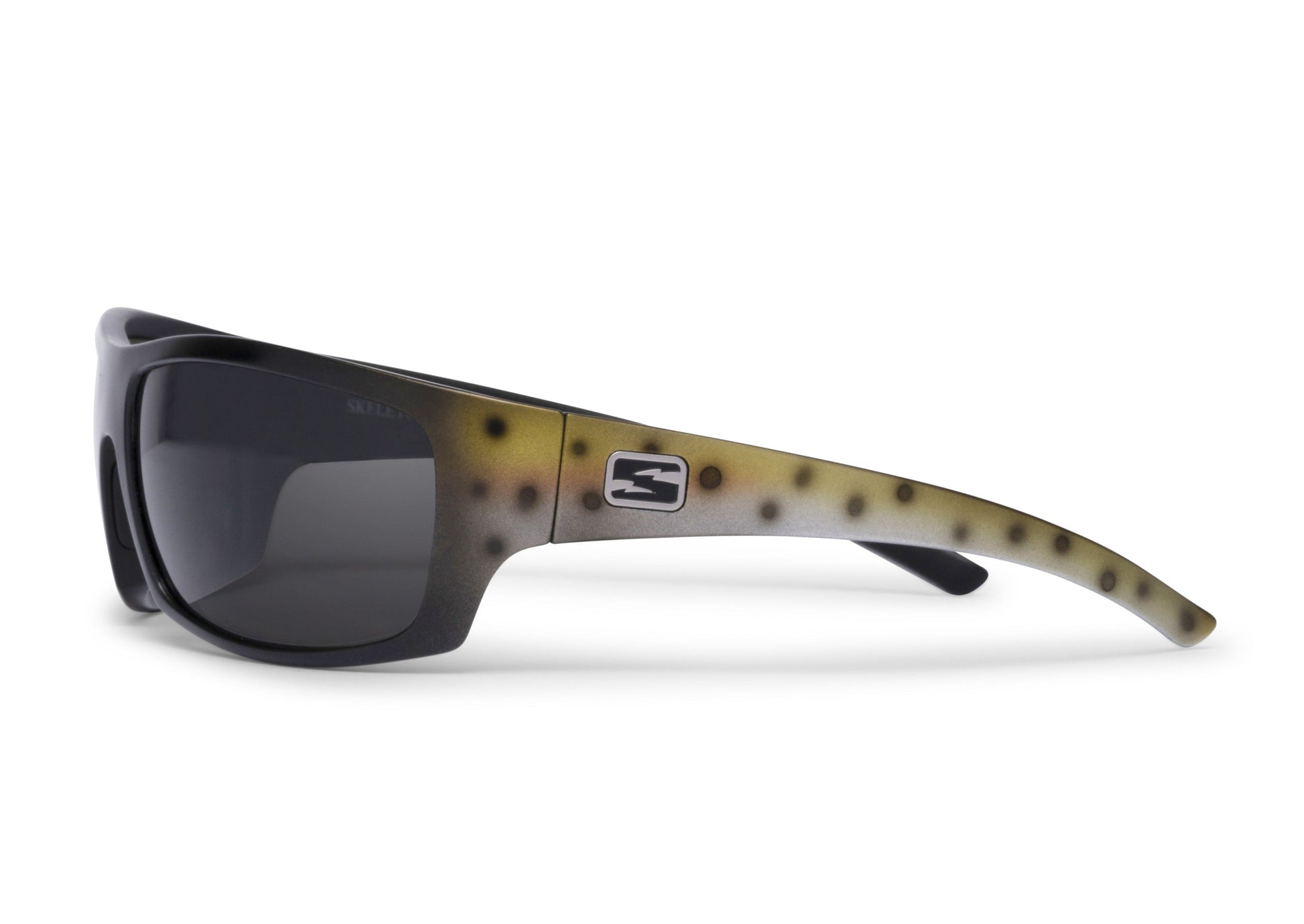 Designed for anglers, the Renegade Special Edition Brown Trout Gray Lens provides optimal visibility for tracking trophy fish. Showcasing a frame mimicking a brown trout's skin and specialized smoke gray lenses, these shades enhance contrast for spotting fish in the water. The lightweight durable design ensures all-day comfort during extended fishing excursions.