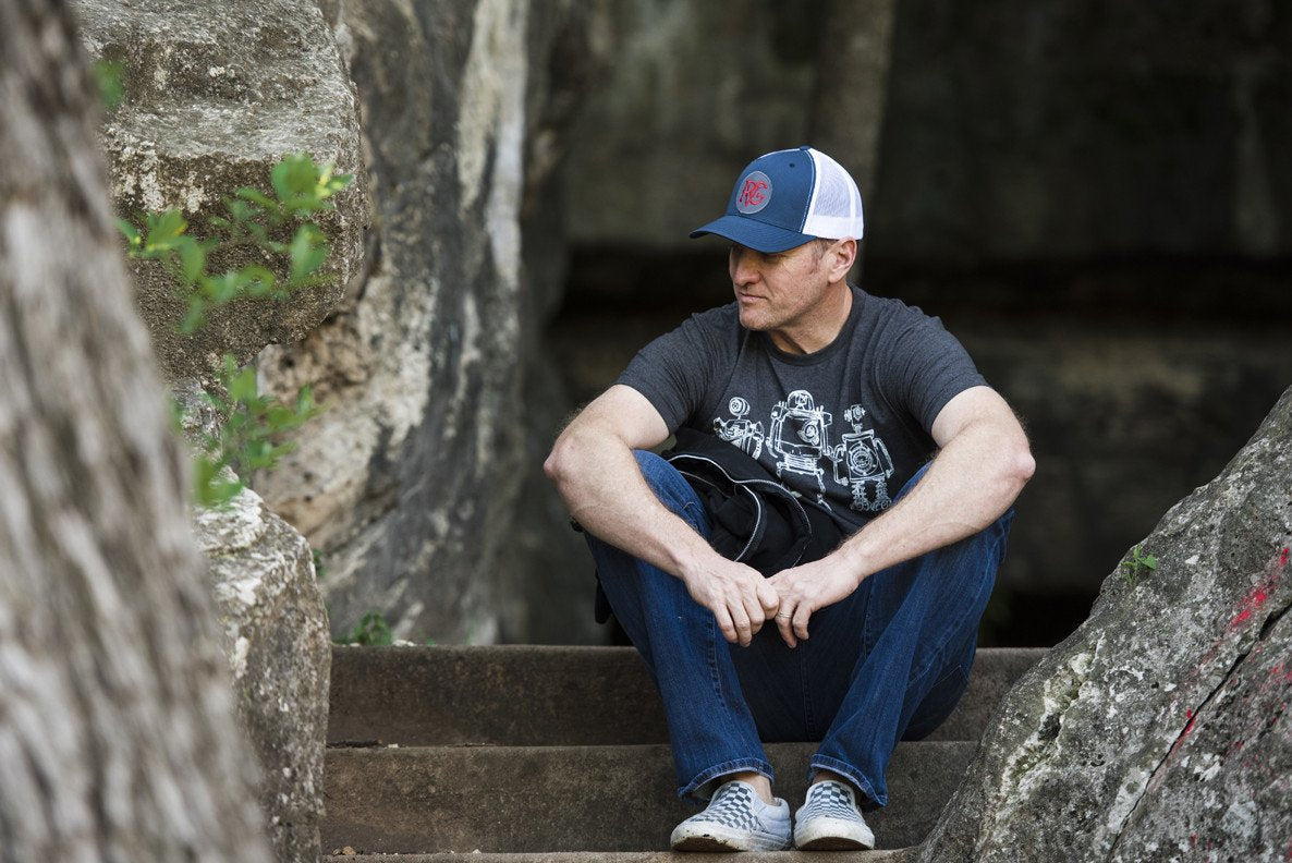 White water based discharge silk screen ink on Heather Black 50/50 poly-cotton construction tee. The perfect 50/50 blend creates a soft and comfortable slim-fitting T-shirt. The softest, smoothest, best-looking t-shirt available anywhere. This design is from an original drawing that I did of some retro robots lined up on the horizon.