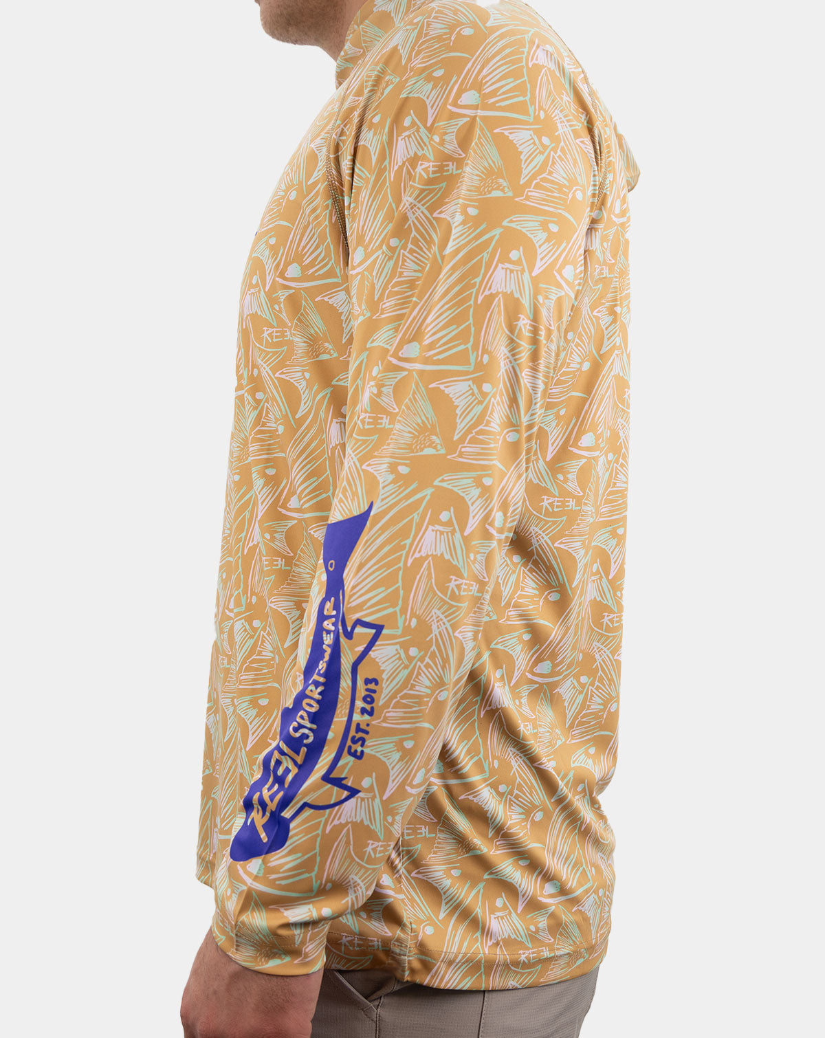 Made from our ultra-breathable, moisture-wicking poly fabric, the Rhythms Hoody keeps you cool under pressure and protected with UPF 50+ sun defense. The radial sleeves let you move freely, so whether you're ripping topwater or setting the hook, nothing holds you back. And the all-over redfish tail pattern? Yeah, that's a tribute to the obsession that keeps us all coming back.