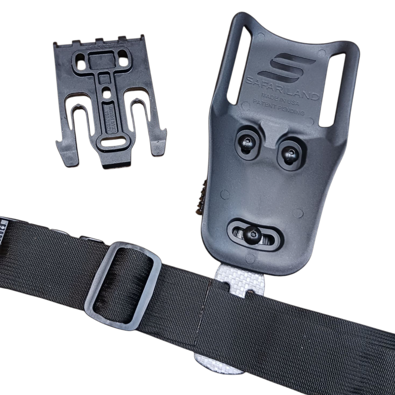This Pre-assembled setup is ready to accept your QLS equipped holster. No need to waste time figuring out how to put everything together. Let us take care of it for you! Thread it on your belt and click in your holster.