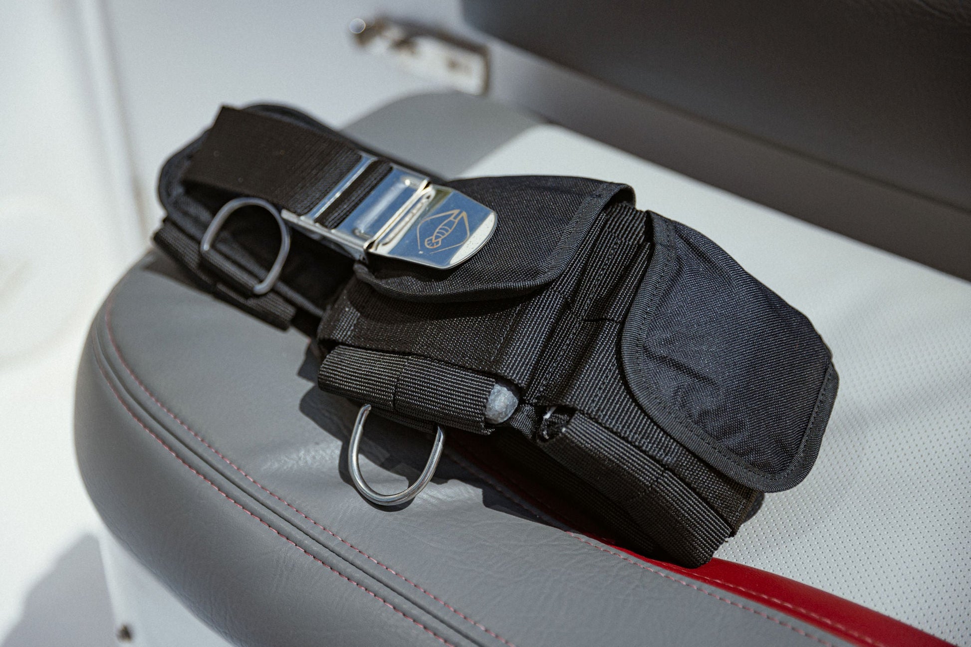 - Crafted from tough nylon webbing with durable polyester pockets, this belt is built to withstand the rigors of underwater adventures.