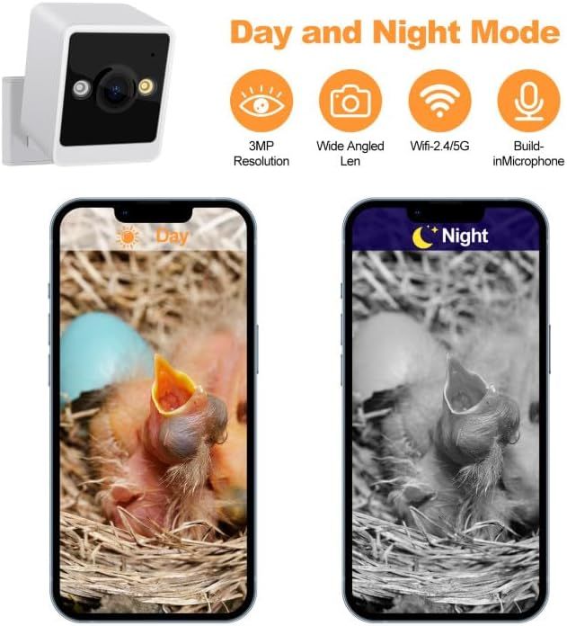 📹[Capture Birds Clearly with 3MP Night Vision]: When the smart birdhouse detects bird activity, you'll get an instant notification on your phone. This birdhouse camera has a 3MP camera, built-in microphone, and night vision lamp so that you can observe birds' appearance and behavior anytime with your family online, regardless of day or night, and even listen to their songs.