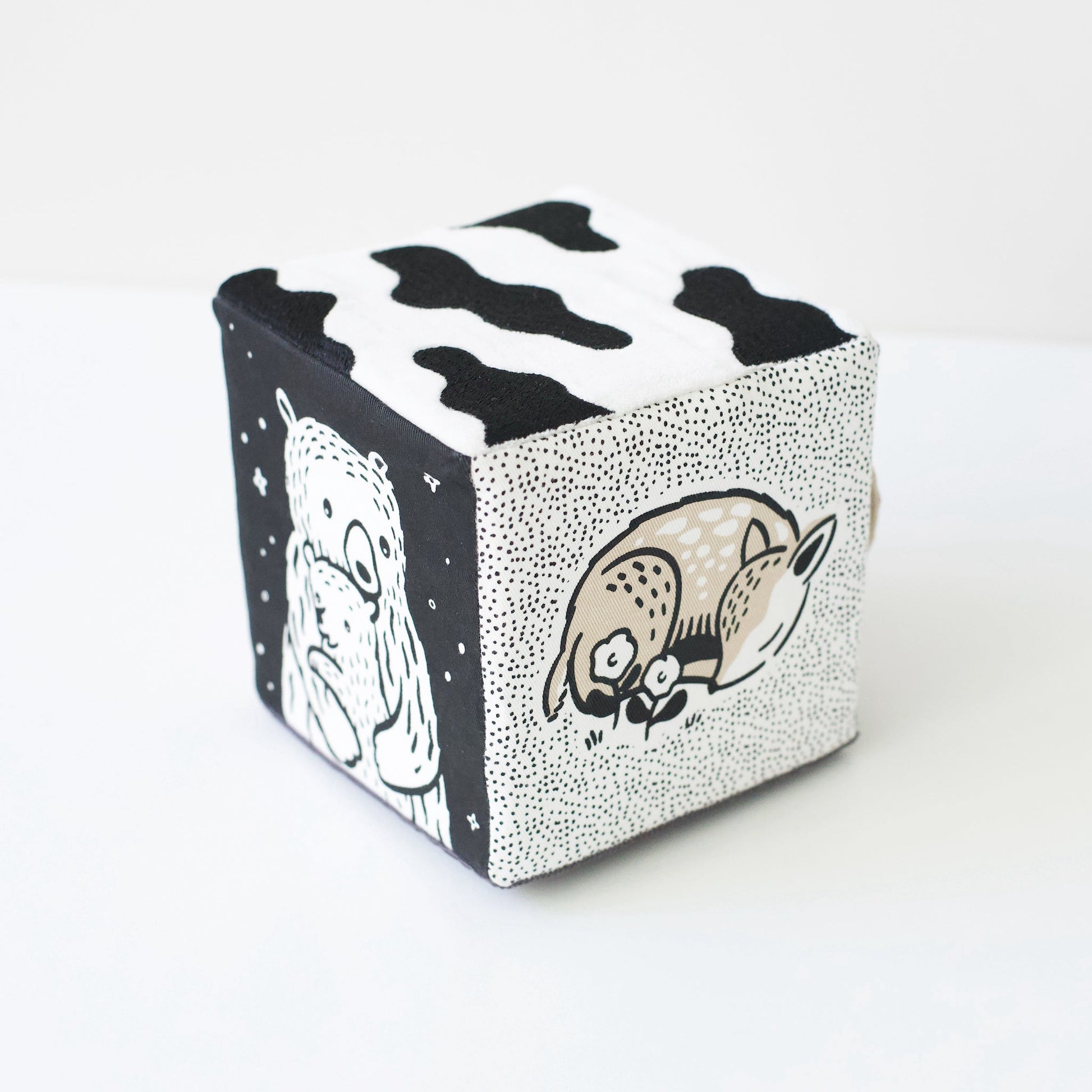Our Baby Animals Soft Block is crafted with love, using organic fabrics to create a gentle, sensory-rich experience. Each side of the block features high-contrast graphics to captivate a baby’s early vision, along with stylish colors for when their color vision begins to develop. The textures, taggies, and crinkle sounds invite tiny hands to touch, grip, and explore, helping to build sensory and motor skills naturally—no lights or buzzers needed.