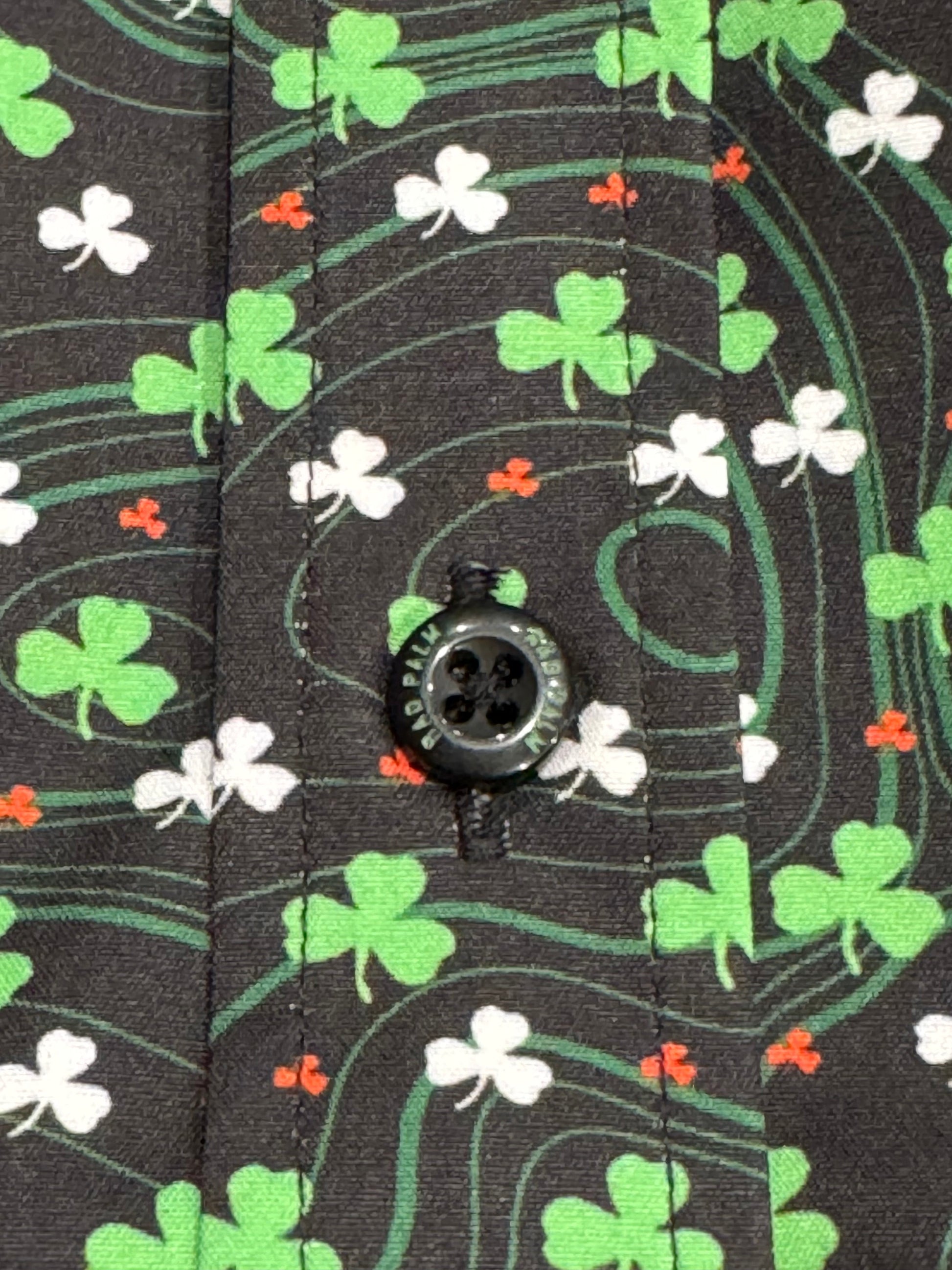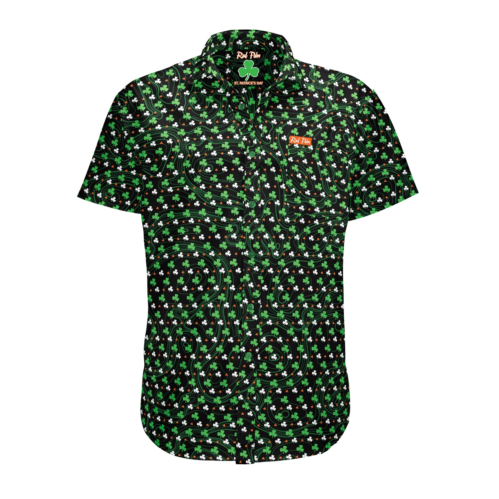The St. Patrick’s Day 2024 Shirt is here! This classic shamrock short sleeve button down features hidden collar buttons, engraved buttons, and sticker hang tag.