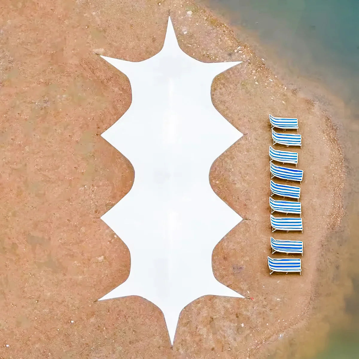 Elevate your outdoor events with the Star Cluster Canopy, a uniquely designed triple-pole canopy that combines functionality with an eye-catching aesthetic. Standing at 15 feet tall and spanning 65 Feet long and 35 feet wide, this beautifully shaped canopy is a standout choice for a variety of occasions.