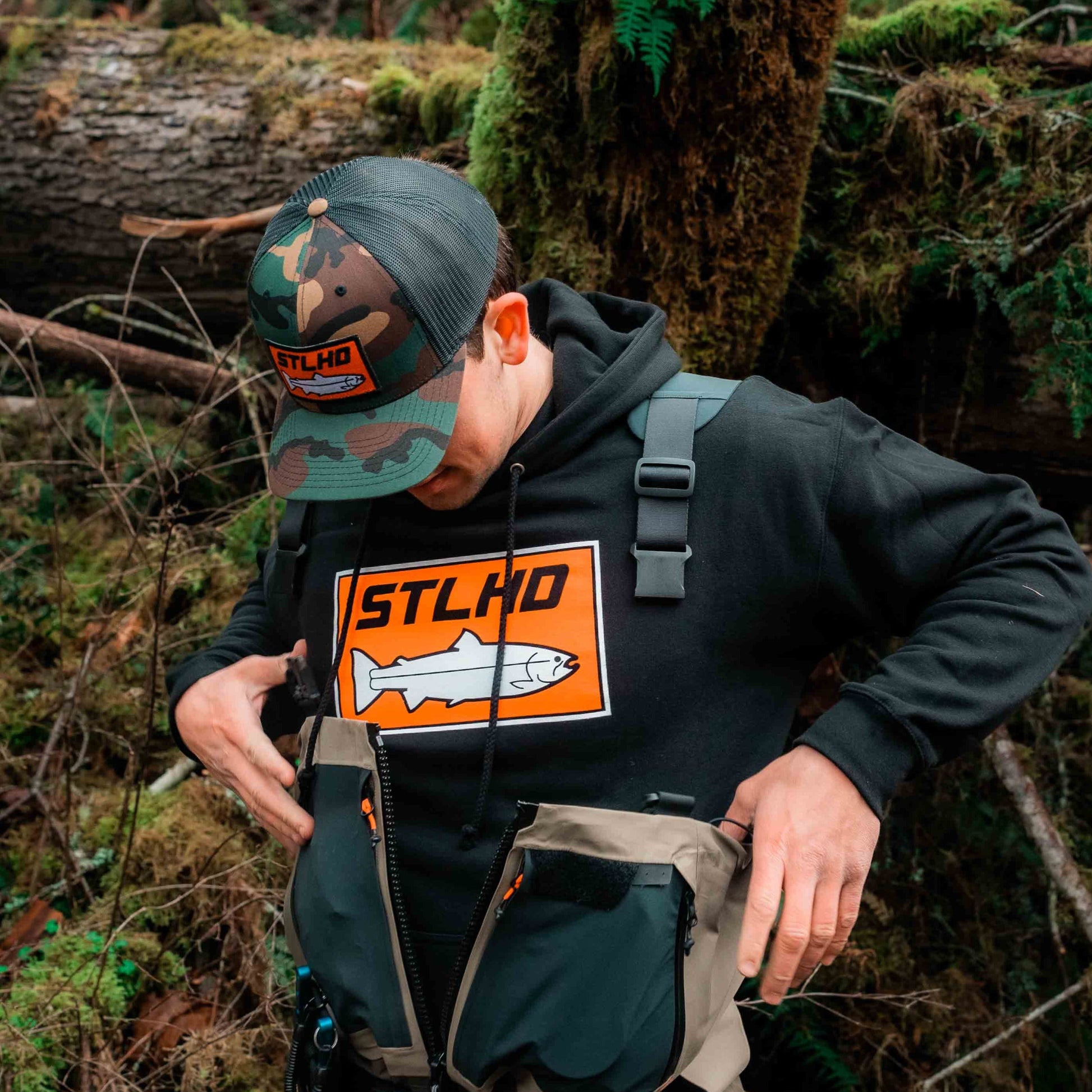 The STLHD Men's Standard Logo Black Premium Hoodie is made from heavy duty 10 ounce fabric, ensuring durability and warmth. Perfect for outdoor activities and everyday wear, this hoodie is a must-have for any fishing enthusiast. Stay comfortable and fish longer with the STLHD Gear..