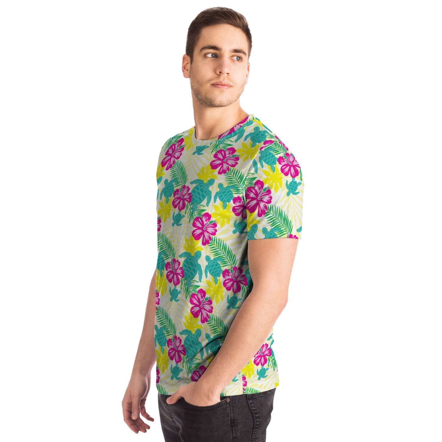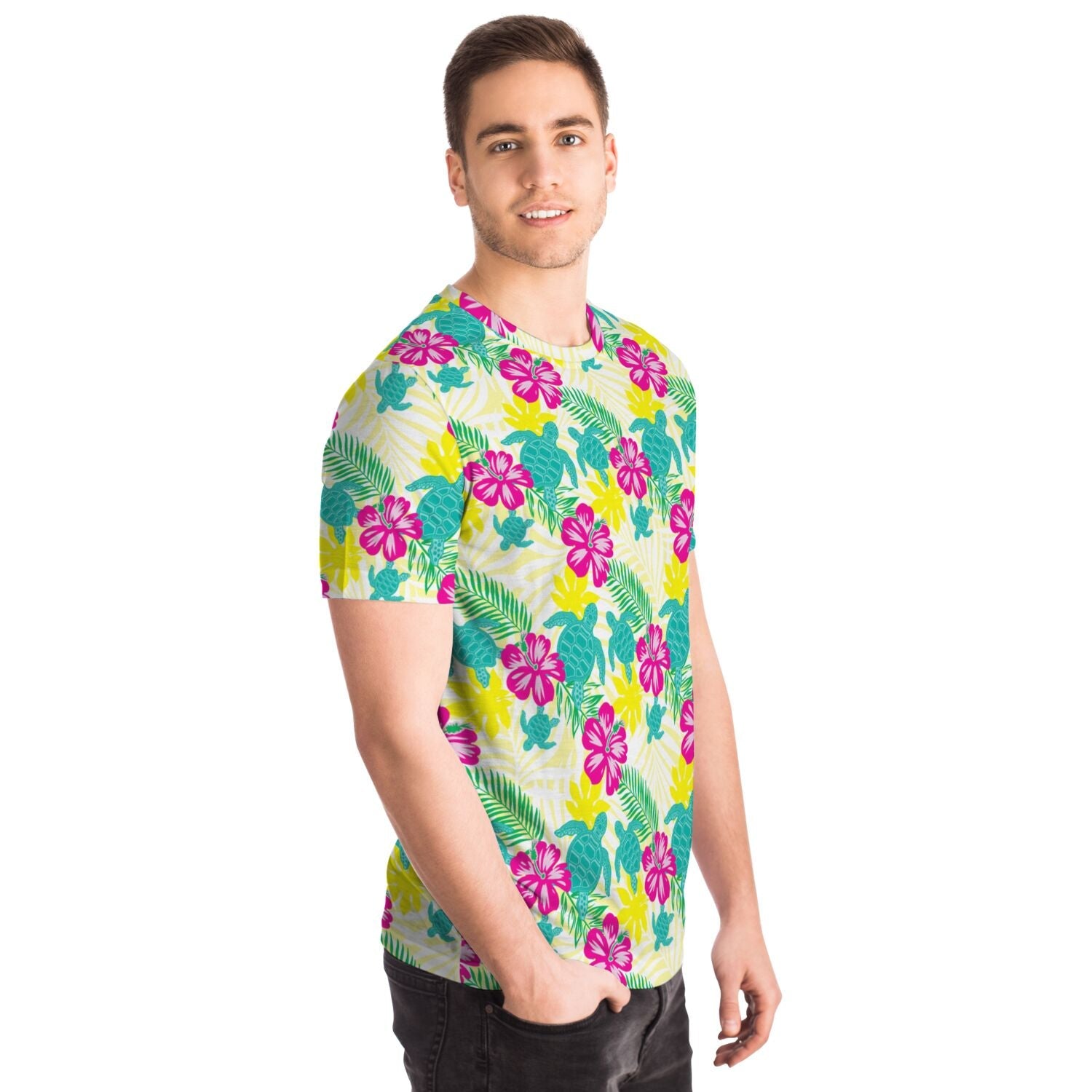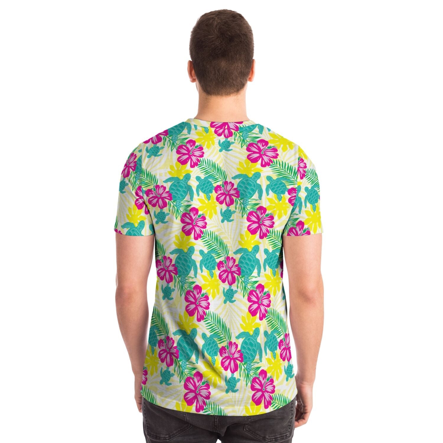 Featuring a crew neck, short sleeves, and a premium 100% polyester fabric with a cotton handfeel, and high definition printing that won't fade after washing.