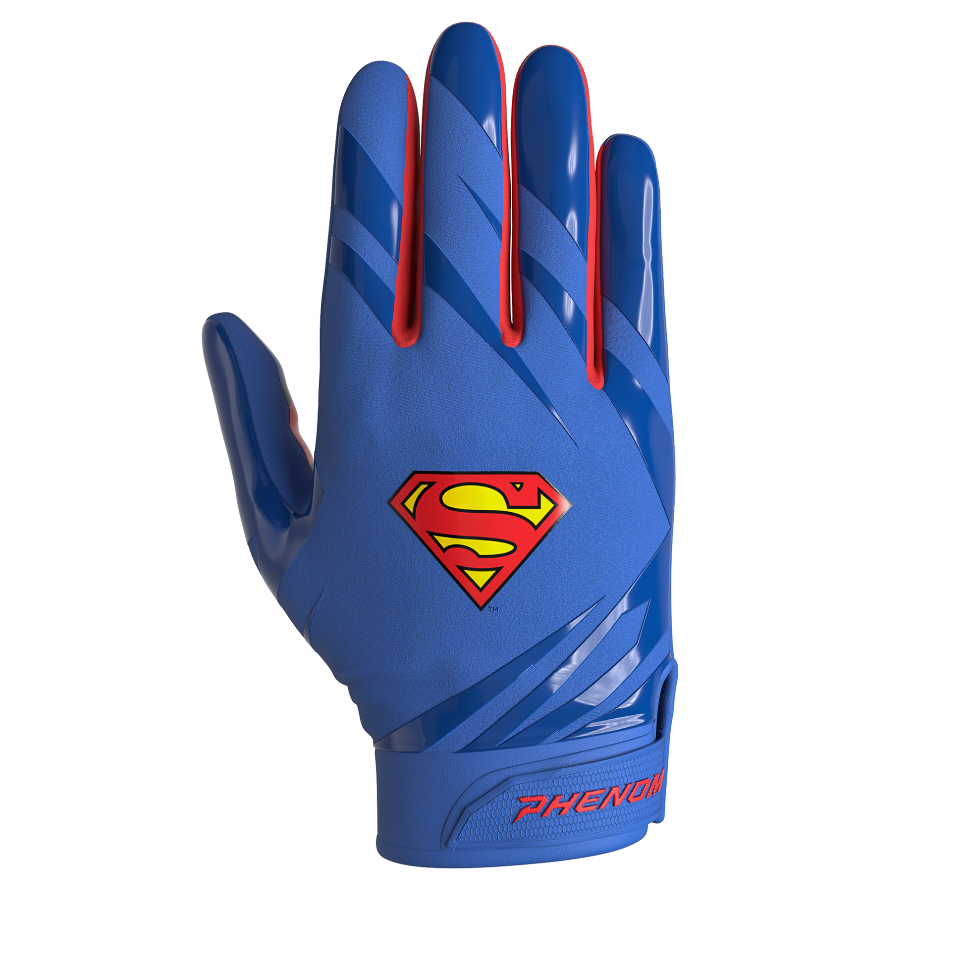 Unleash your inner superhero with the VPS5 Superman Football Gloves by Phenom Elite.