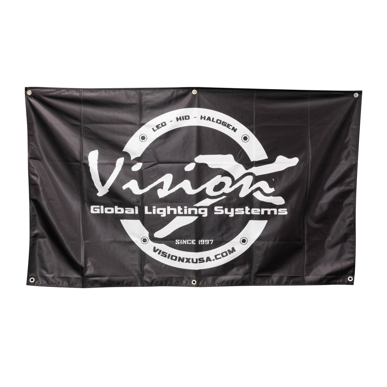Need to mark your camp site, or finish off your man cave? Fly your Vision X logo loud and proud and make a statement with our 3' x 5' Cloth Banner Flag.