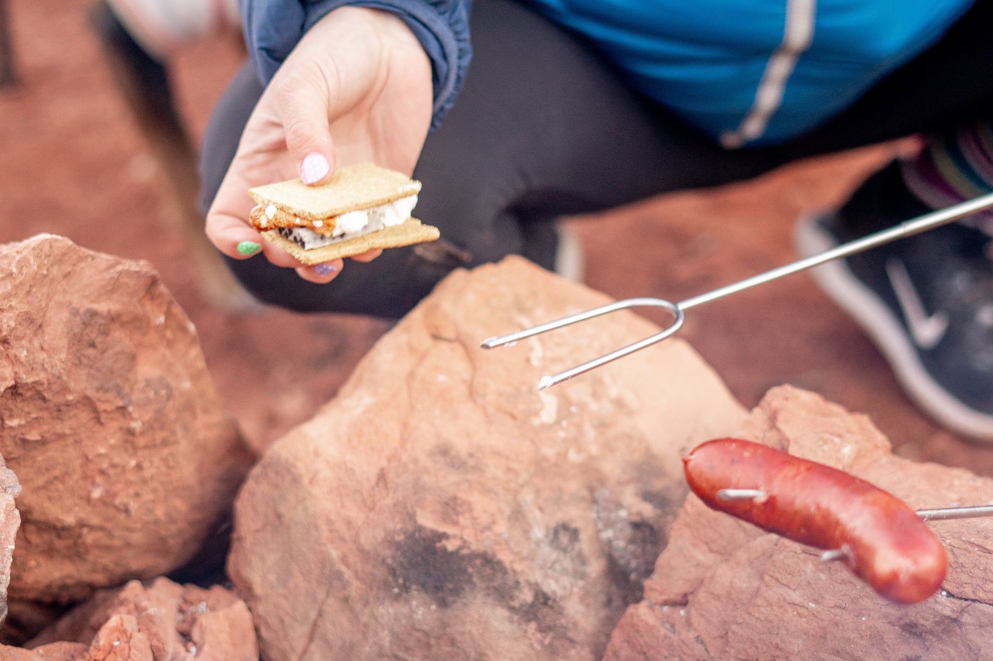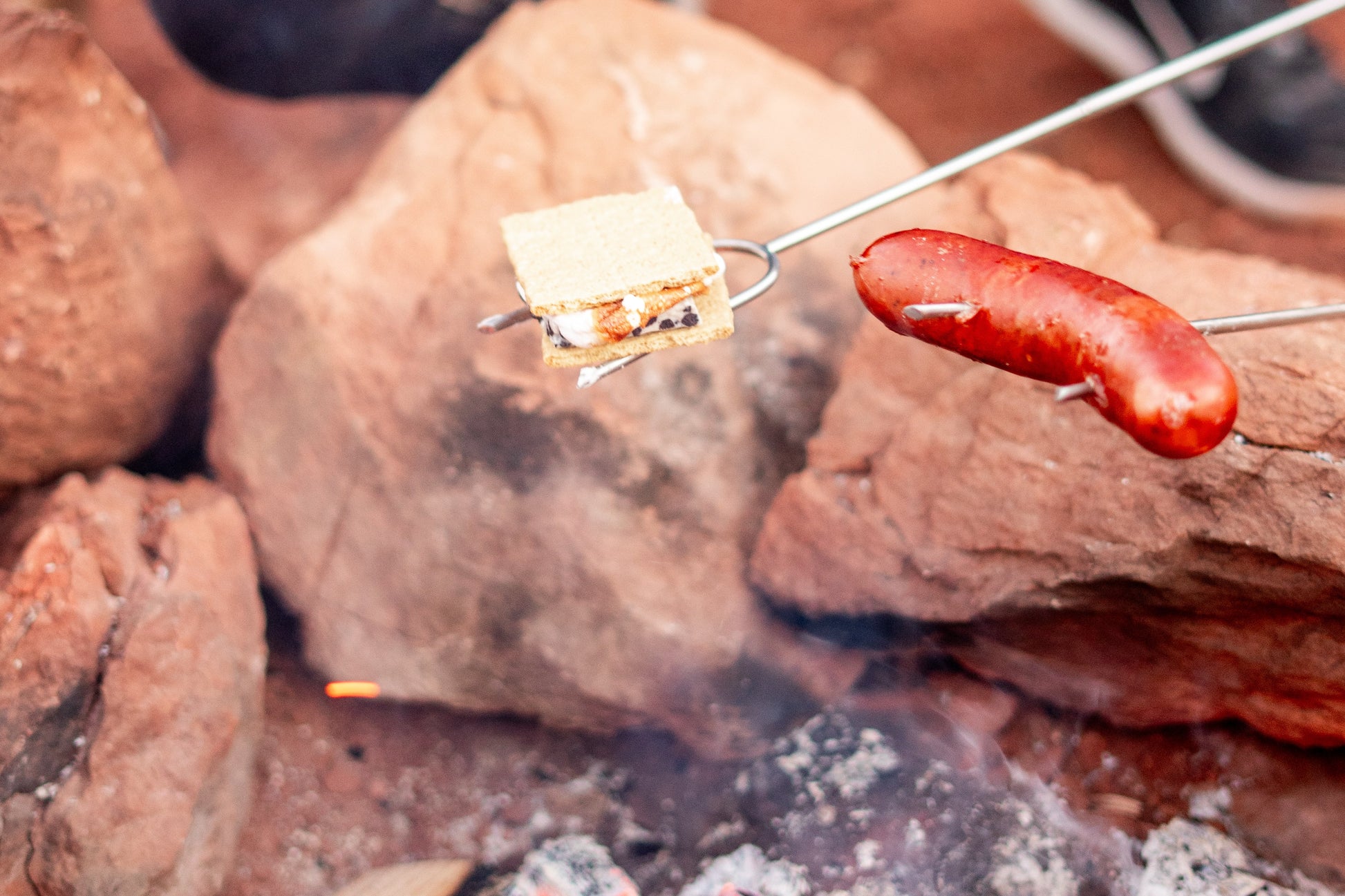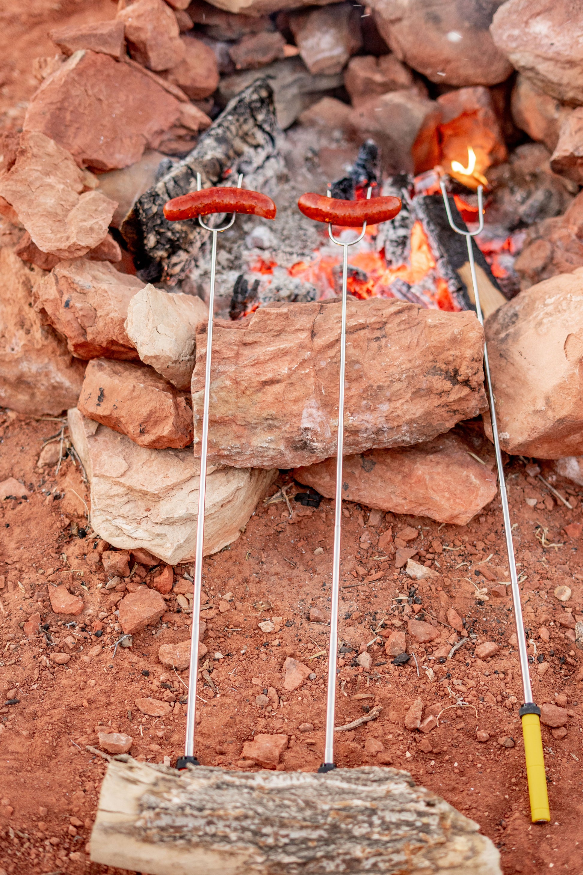 Cook around the fire with your friends with the compact design Weenie Roasters. Our intuitive stainless steel design folds out from 12" to 34"! Perfect for s'mores, hot dogs, and more. Includes carry bag and pointy protector caps.