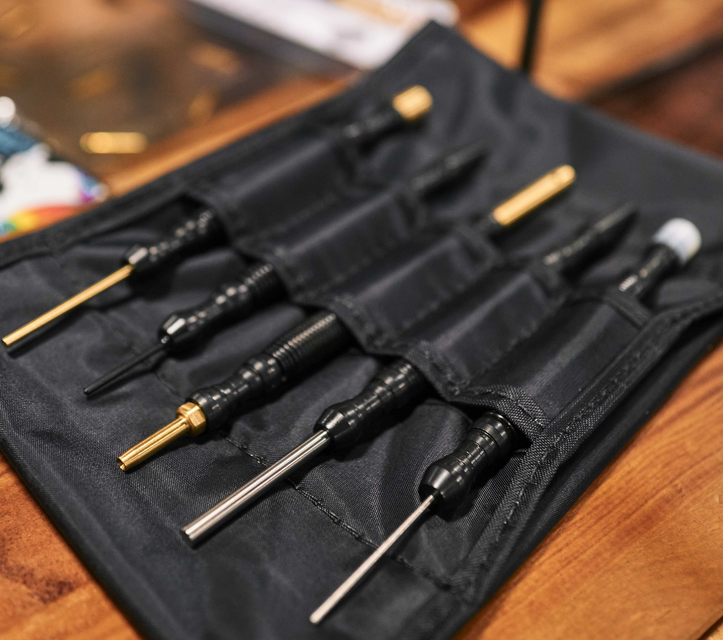 Roll out your gun cleaning mat, pull out the gun cleaning kits and get to work! While using the takedown tools you’ll reduce your gun cleaning time down by 90%! And you’ll also do a much better clean because you’ll have your upper and lower receiver apart, your Glock slide off etc. We highly recommend pairing this kit with our favorite gun cleaner. Check out our Gunsmithing set that comes with a free 8oz bottle of cleaner