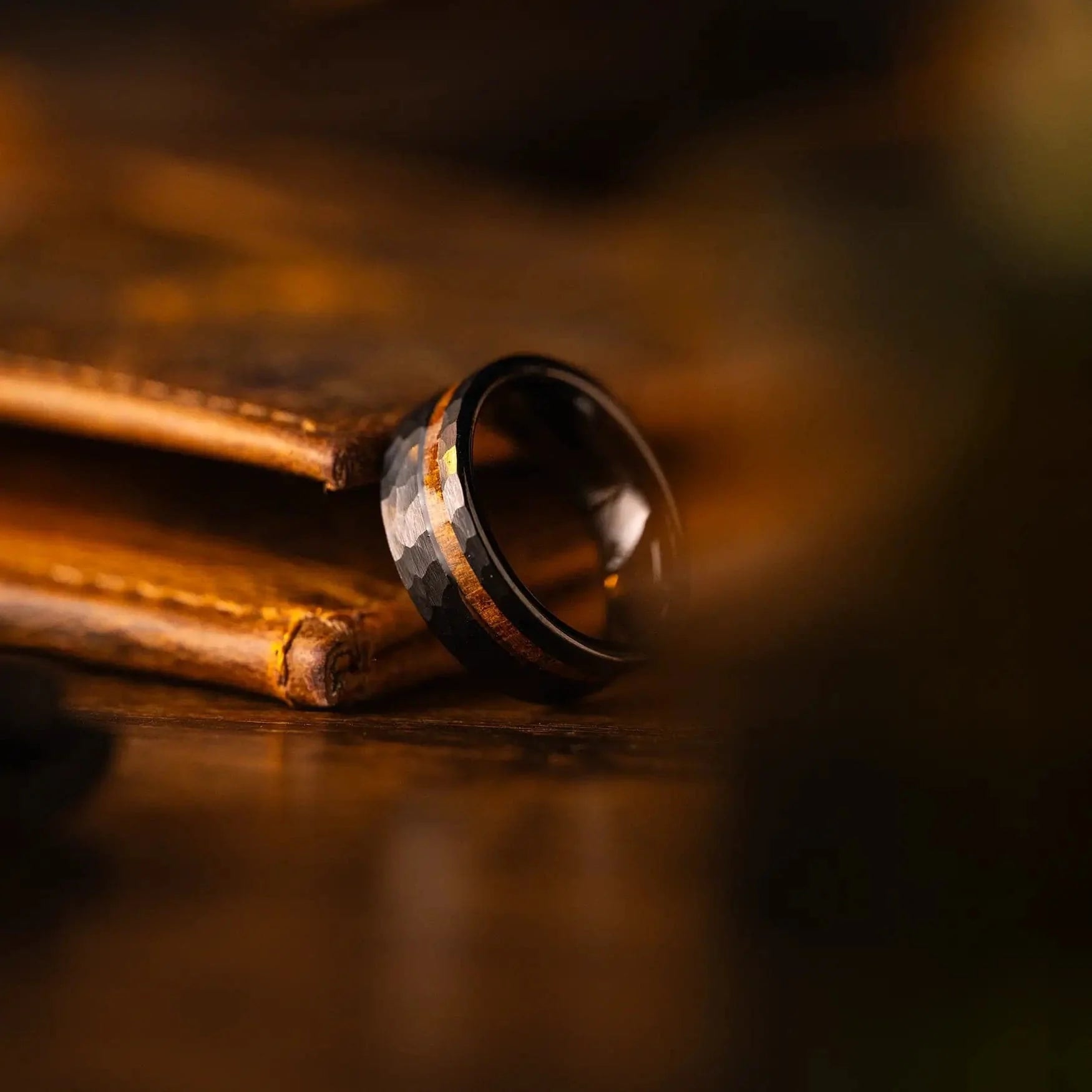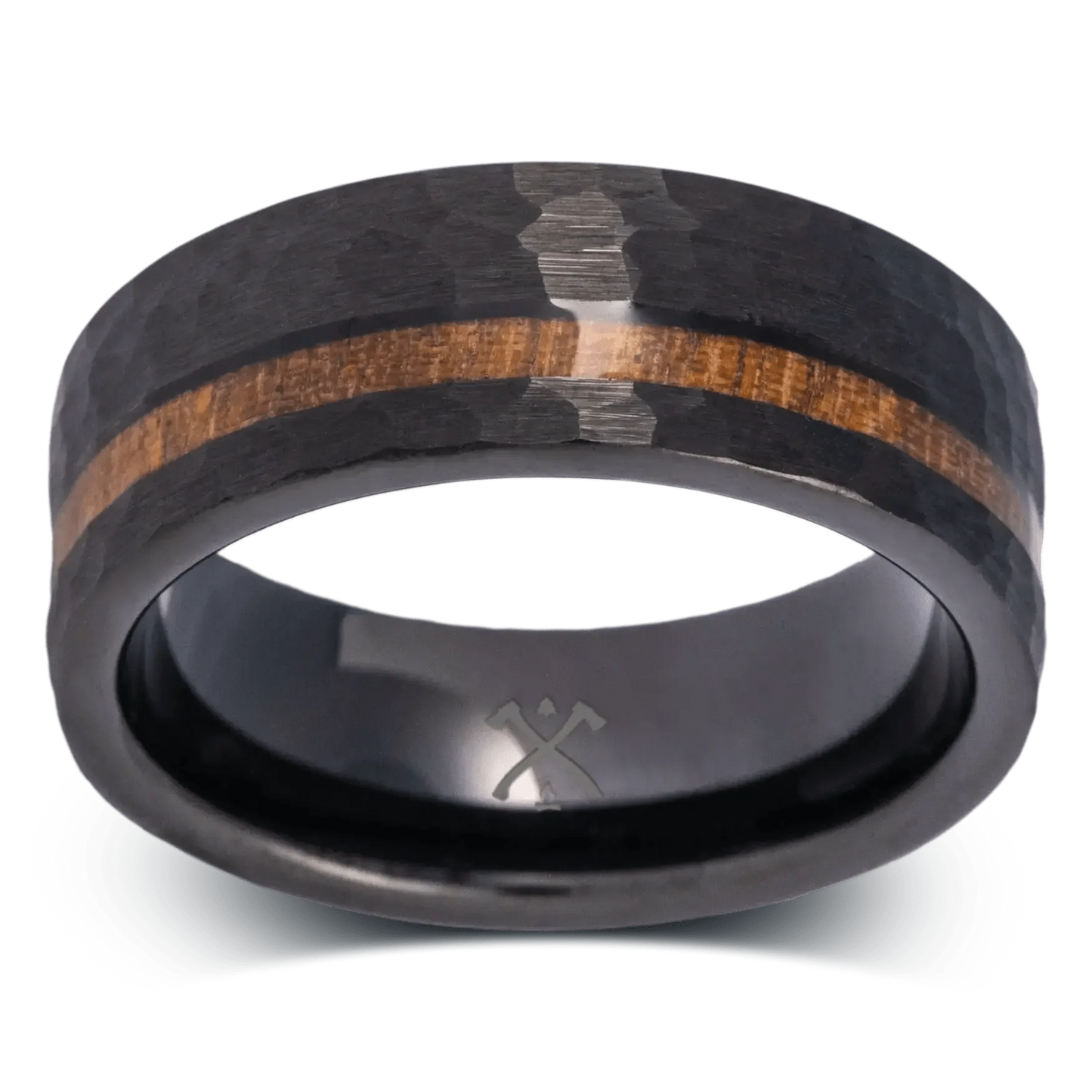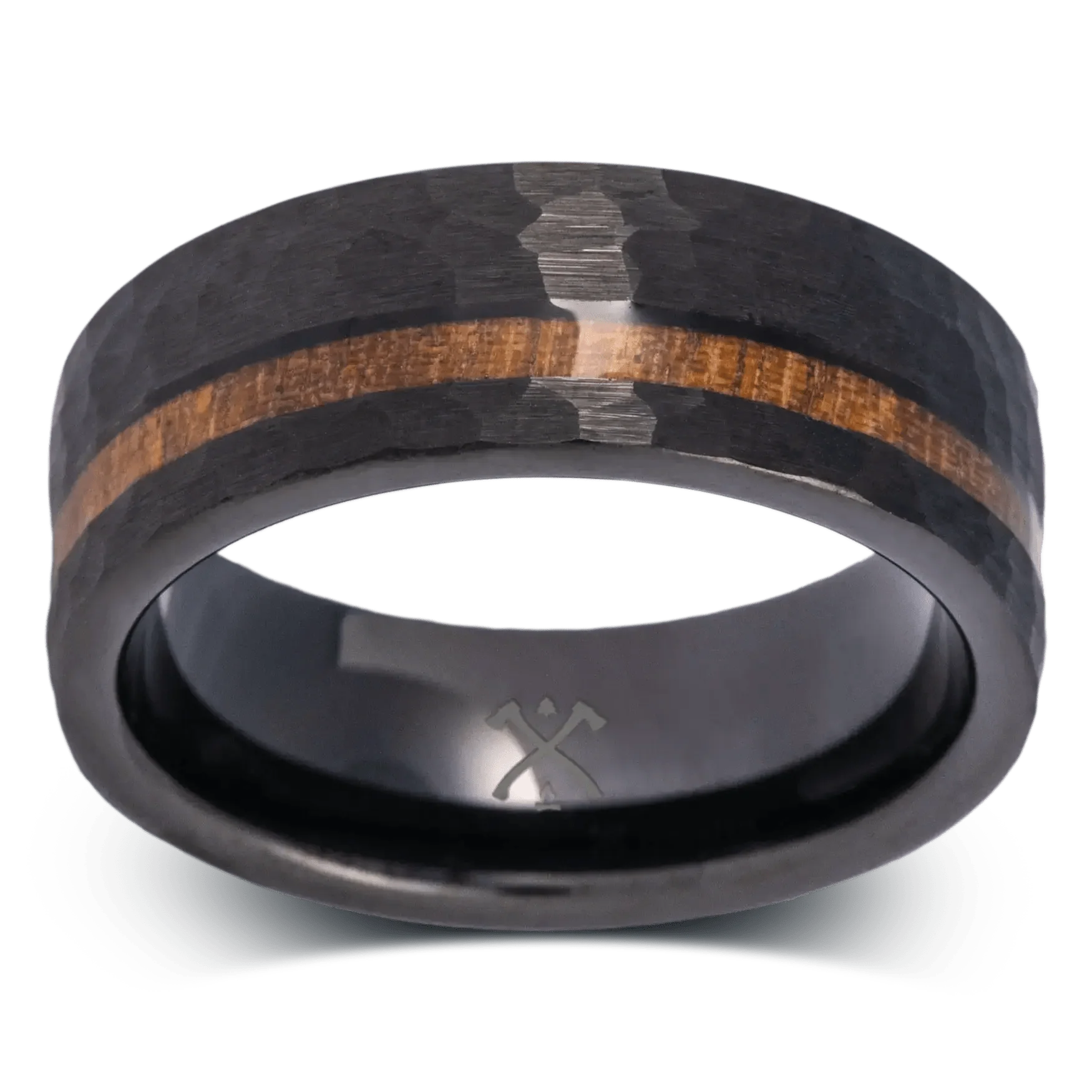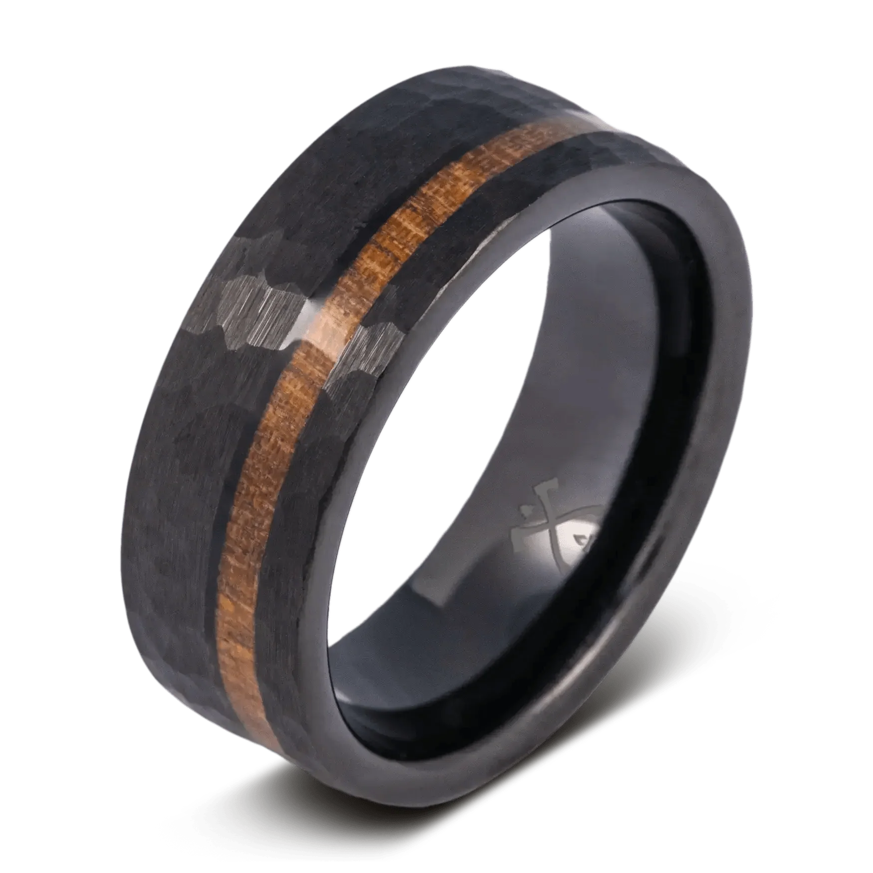 - Black Plated Tungsten with Offset Koa Wood Inlay