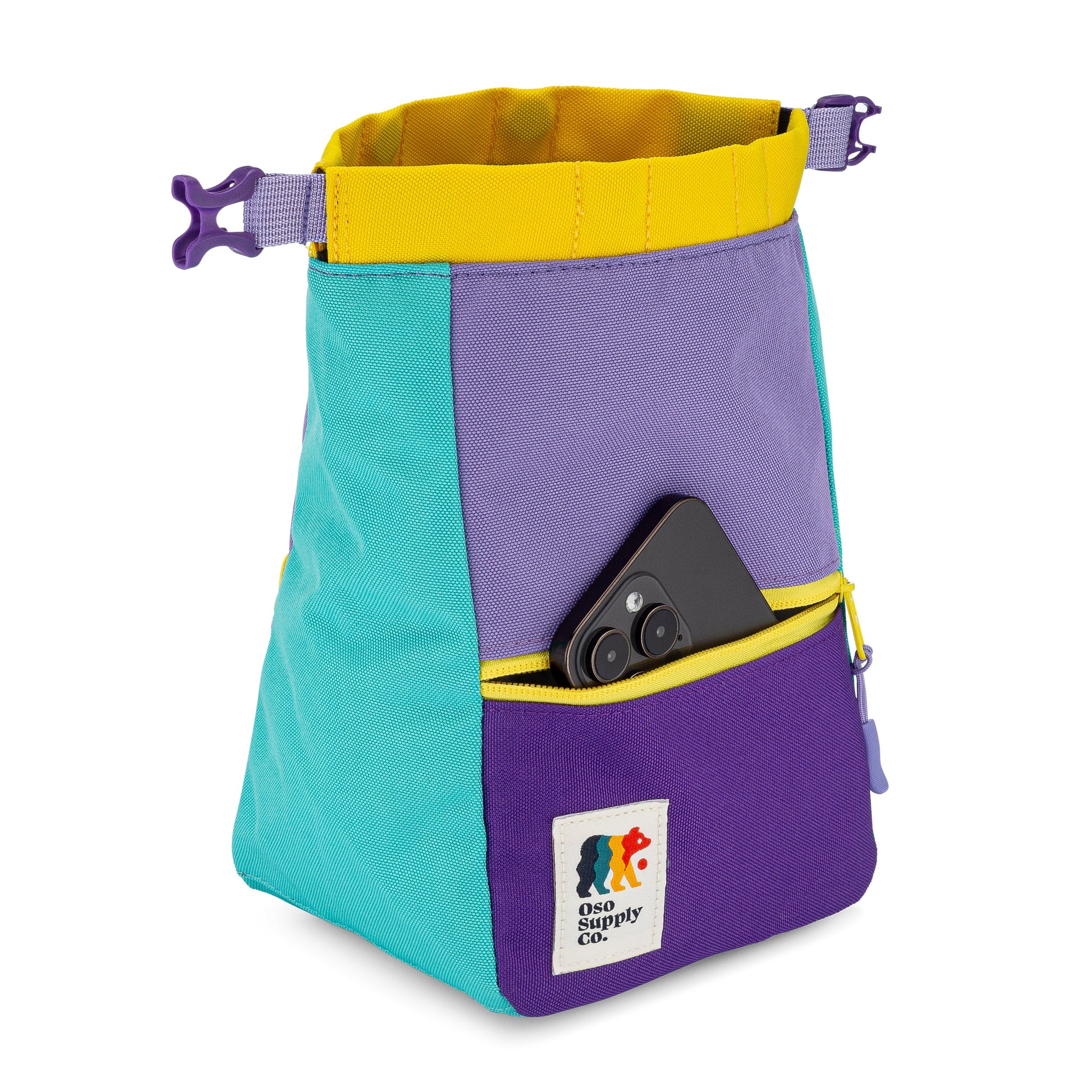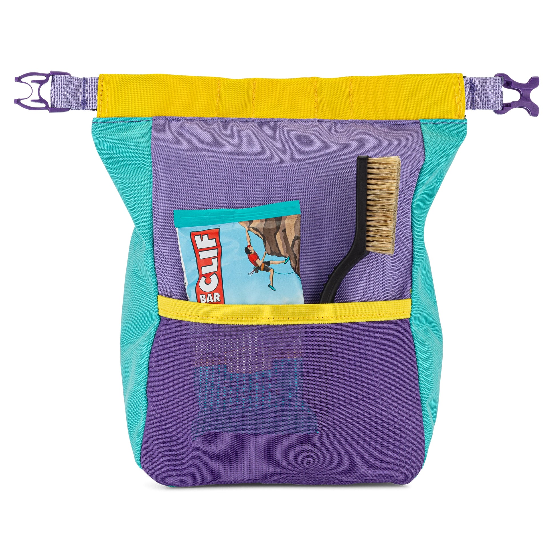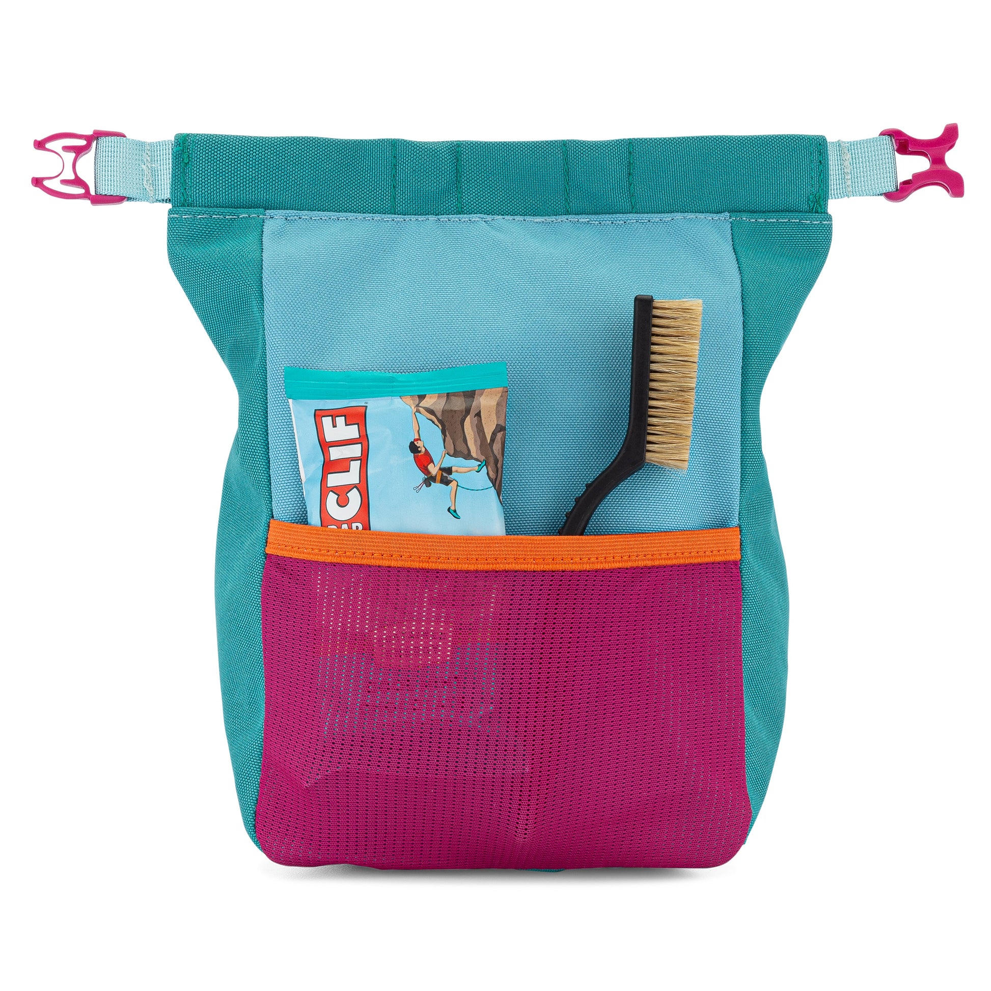 A blend of contemporary style, durability and functionality. Elevate your climbing experience with our vibrant bouldering chalk buckets, ideal for both indoor gym sessions or days at the crag. Thoughtfully designed down to the last detail, including a magnetic roll-top opening for easy access to chalk with both hands plus a zippered pocket and external mesh pouch giving you twice the storage capacity.