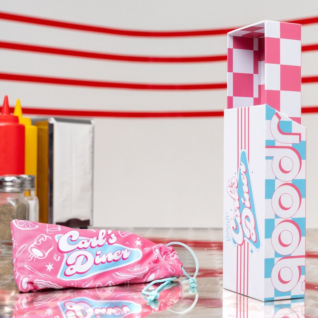 Spice up your style with hot sauce sunglasses! These red frames feature green reflective polarized lenses & sizzling custom packaging. Part of our limited-edition Carl's Diner line celebrating comfort food. As the saying goes: always wear condiments.
