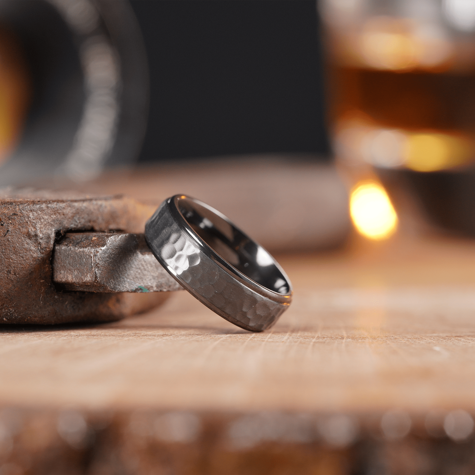 - Flat Stepped Edge Design in Comfort Fit with Hammer Finish