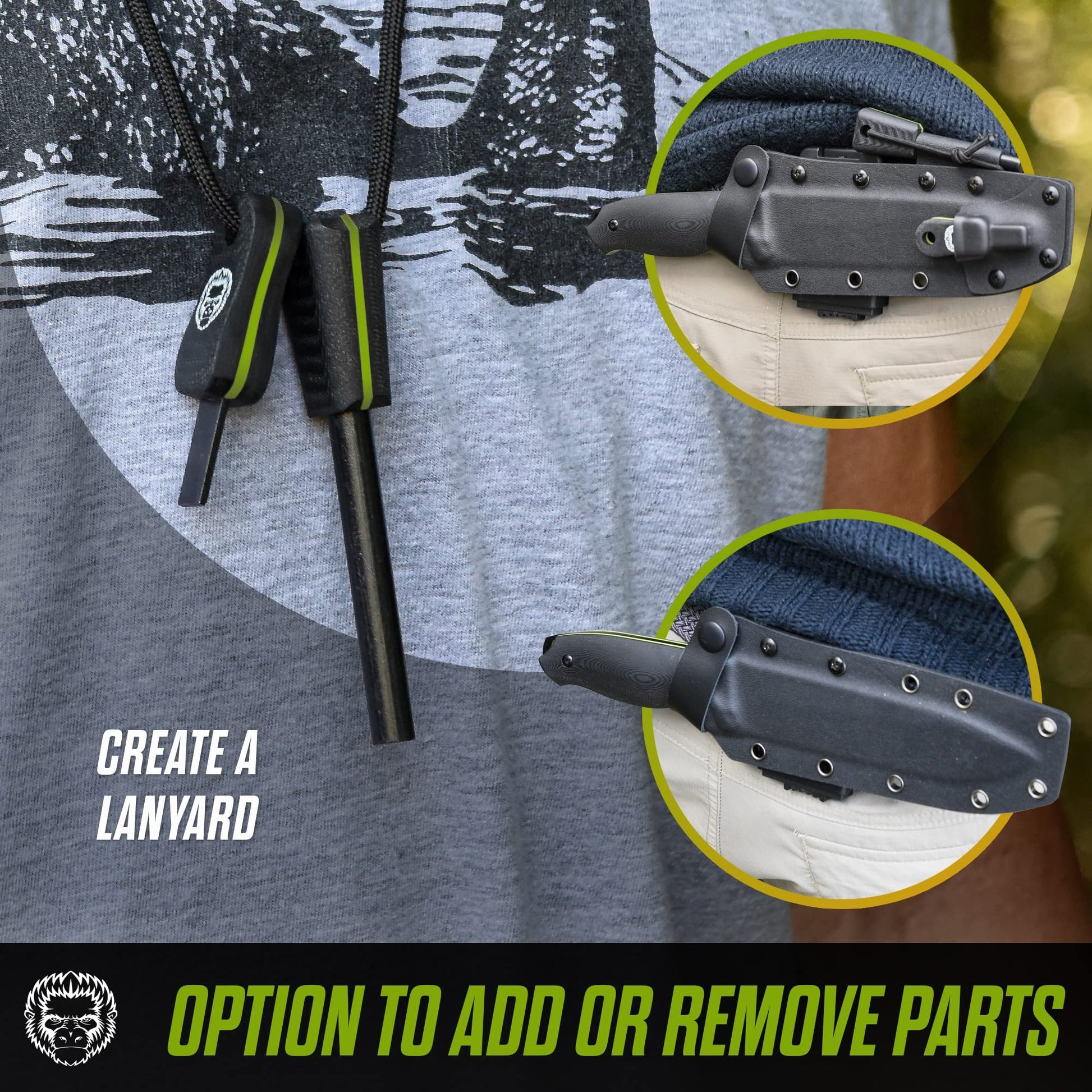 ✅ KEEP YOUR EDC KNIFE SAFE IN THE KYDEX SHEATH: The handy K-Sheath of your full tang knife features an upgraded Tek Lok + Lanyard hole, for easy attachment to your belt and safe & easy carrying everywhere.
