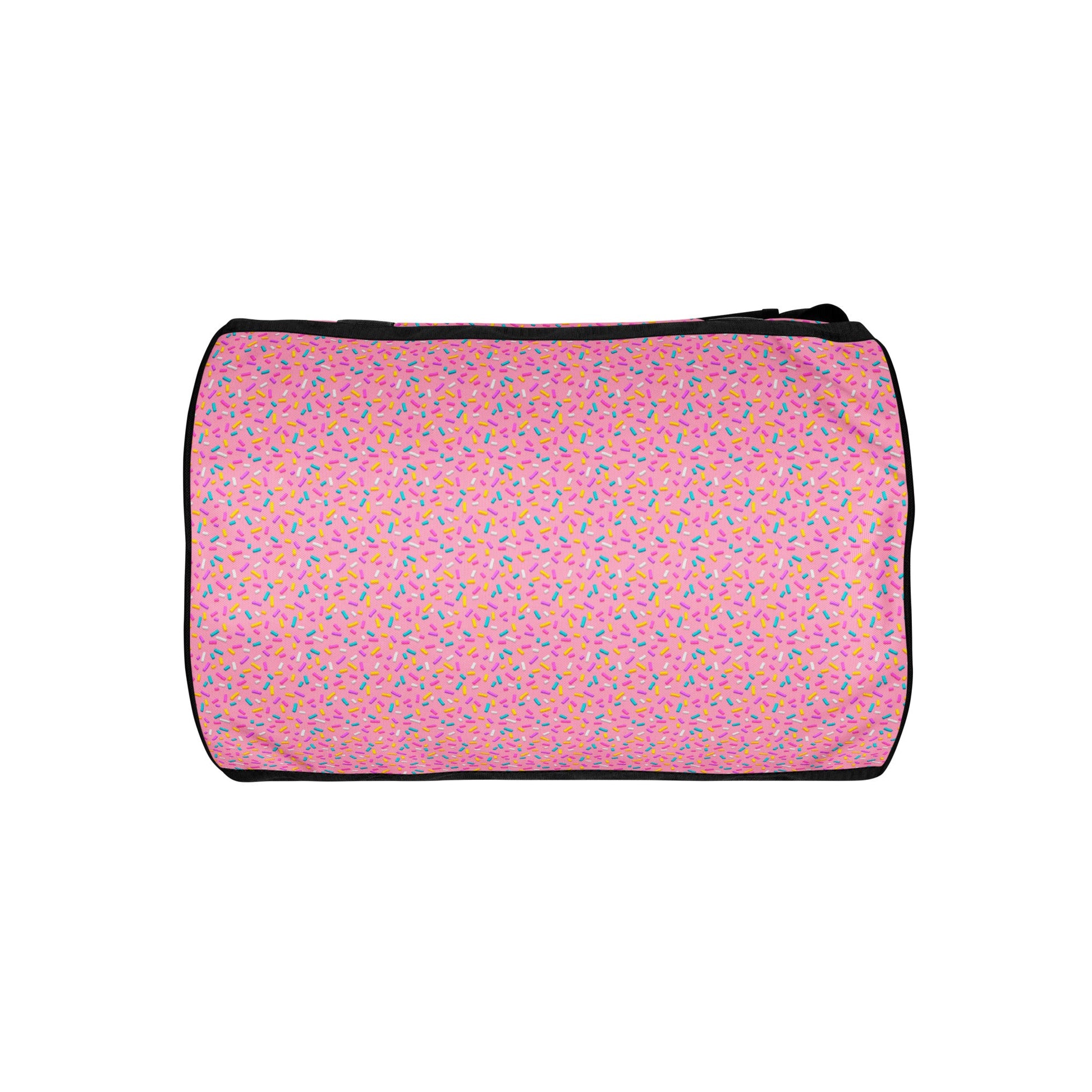 Ready to get your fitness on? Add some punch to pumping iron with this all-over print gym bag. Made from 100% polyester and sturdy, water-resistant fabric, this bag is fun meets function. And it’s got pockets!